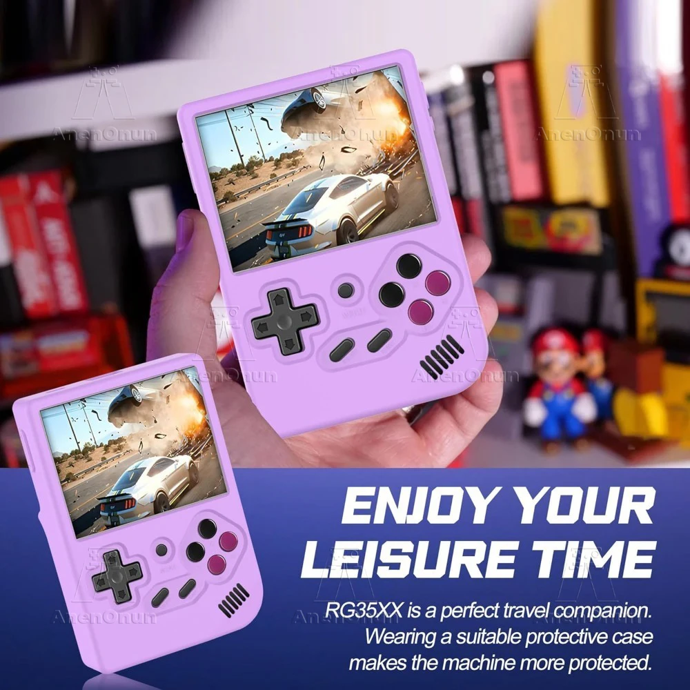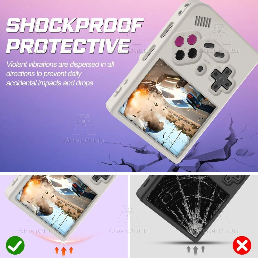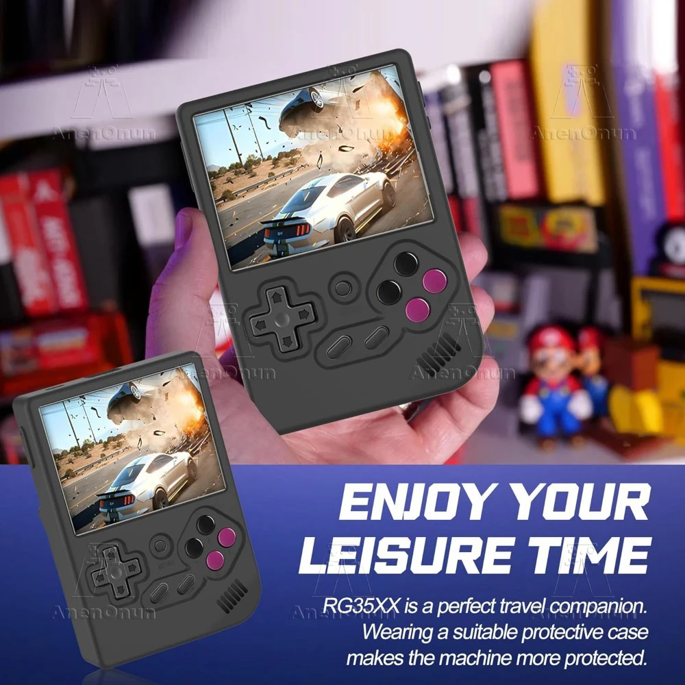 Protección completa: adecuada para RG35XX. Fabricada con material de silicona que absorbe los golpes, es flexible y antiarañazos, esta funda protege su dispositivo de golpes, caídas, rayones, polvo y huellas dactilares cotidianos.