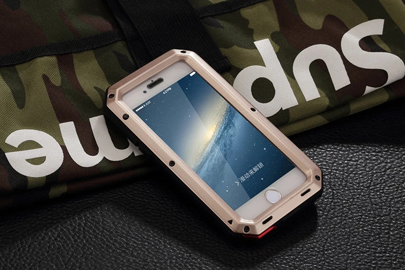 Comprar Funda protectora de aluminio para iPhone, carcasa de Metal resistente a prueba de golpes y polvo para modelos 13, 12, 11 Pro, 8, 7, 6 Plus, 5S, Xs Max, SE
