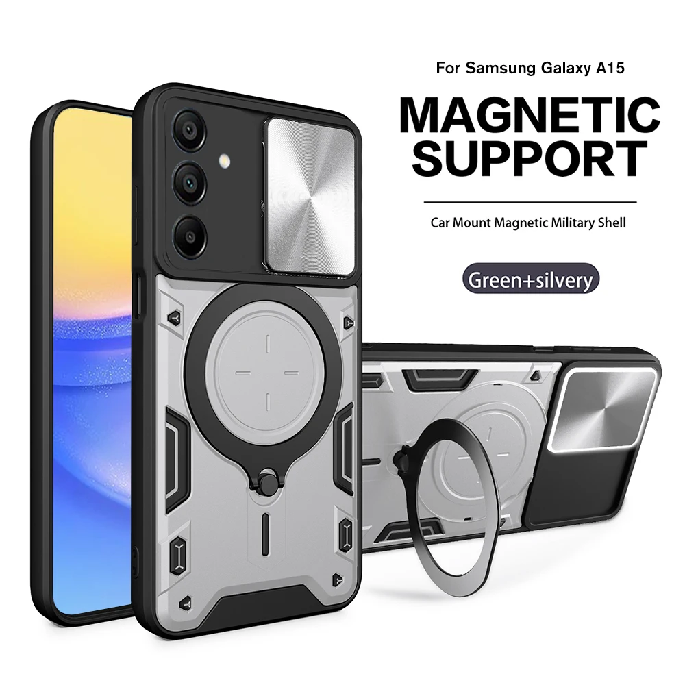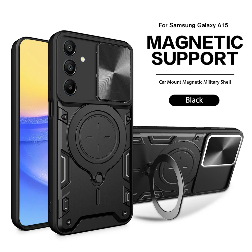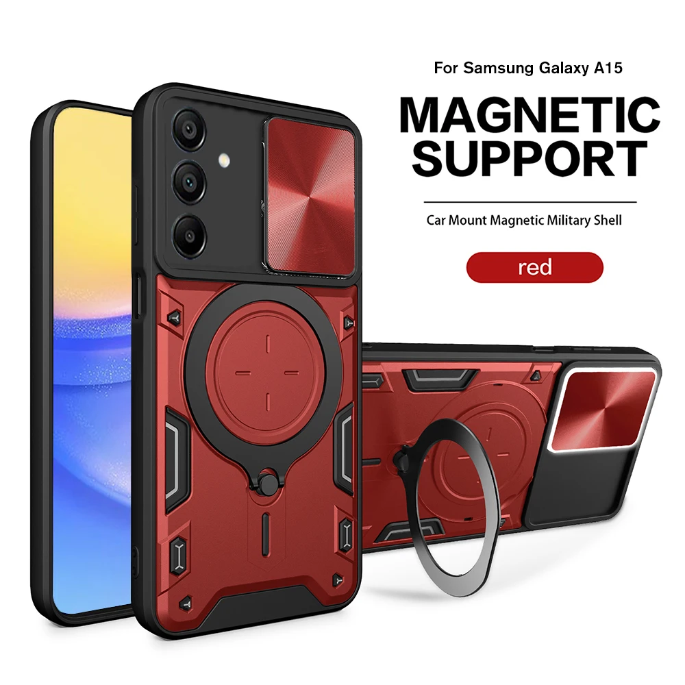 Para Samsung Galaxy A15 4G A25 A35 A55 5G funda deslizante Cámara proteger armadura fundas Sumsung A 15 25 35 55 soporte de anillo magnético cubierta
