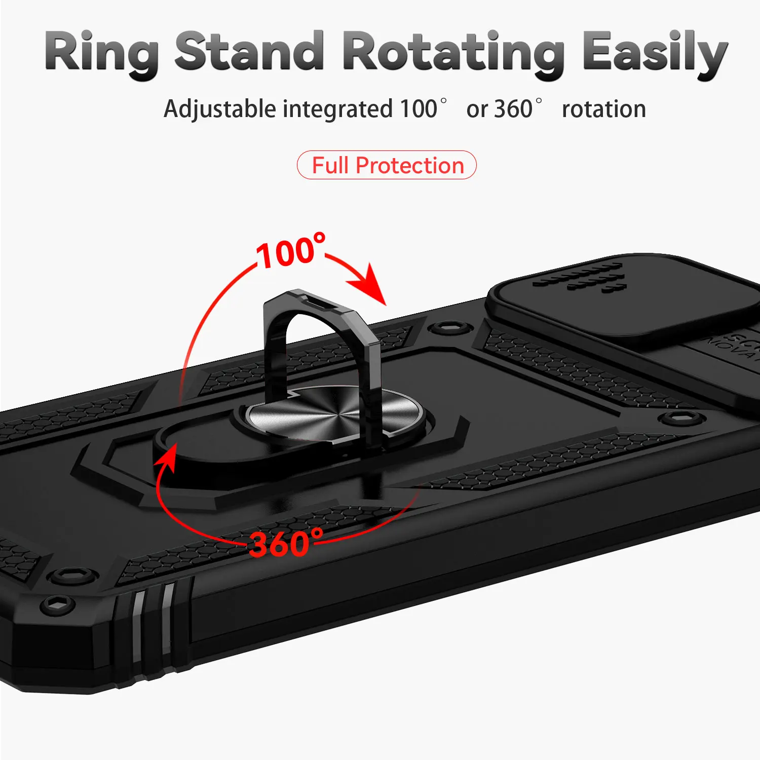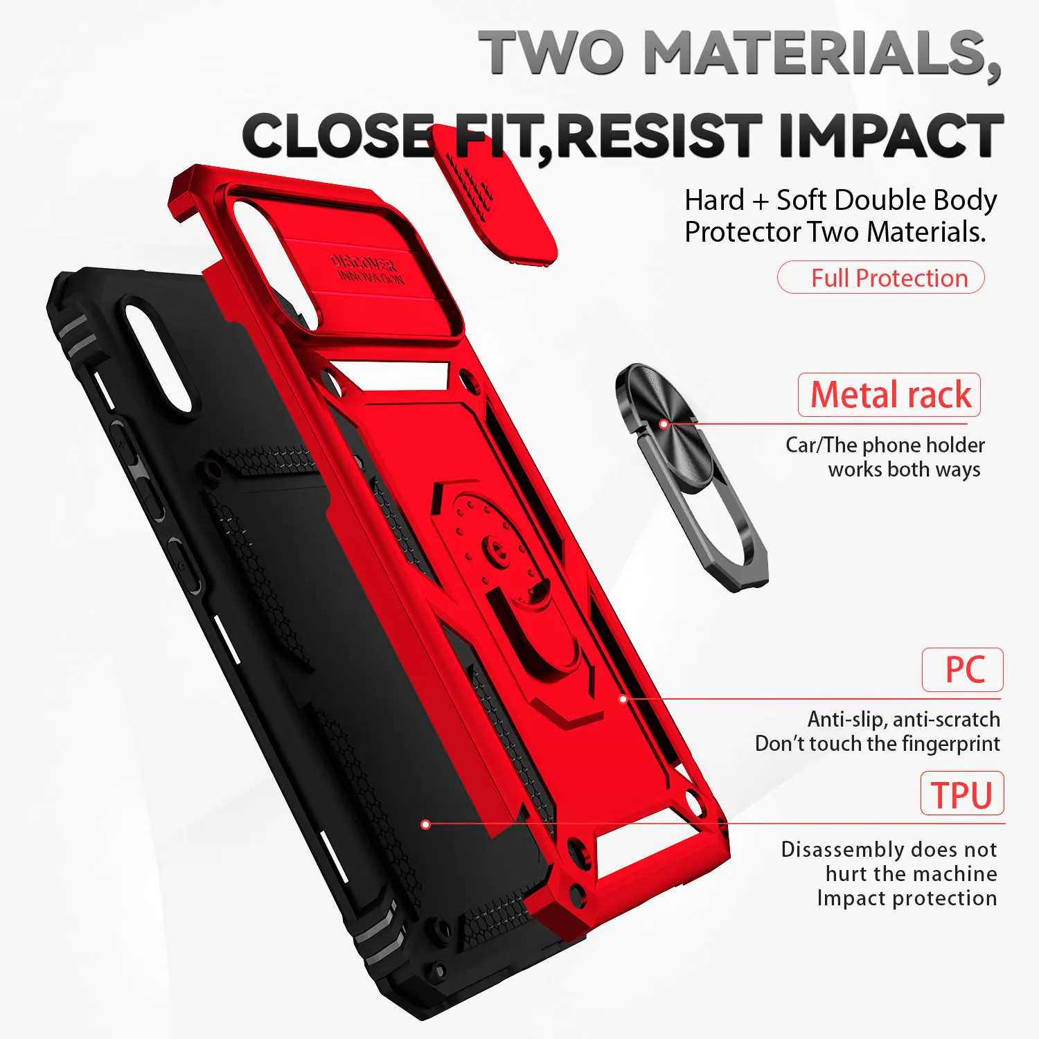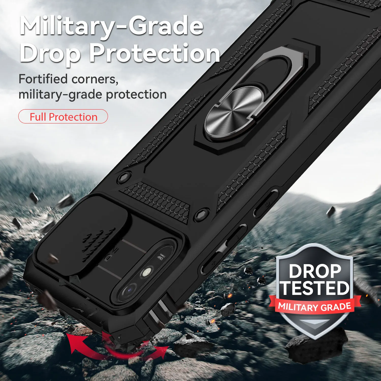 Comprar Funda protectora con anillo para Xiaomi Redmi 9A, carcasa trasera A prueba de golpes, protector de lente deslizante