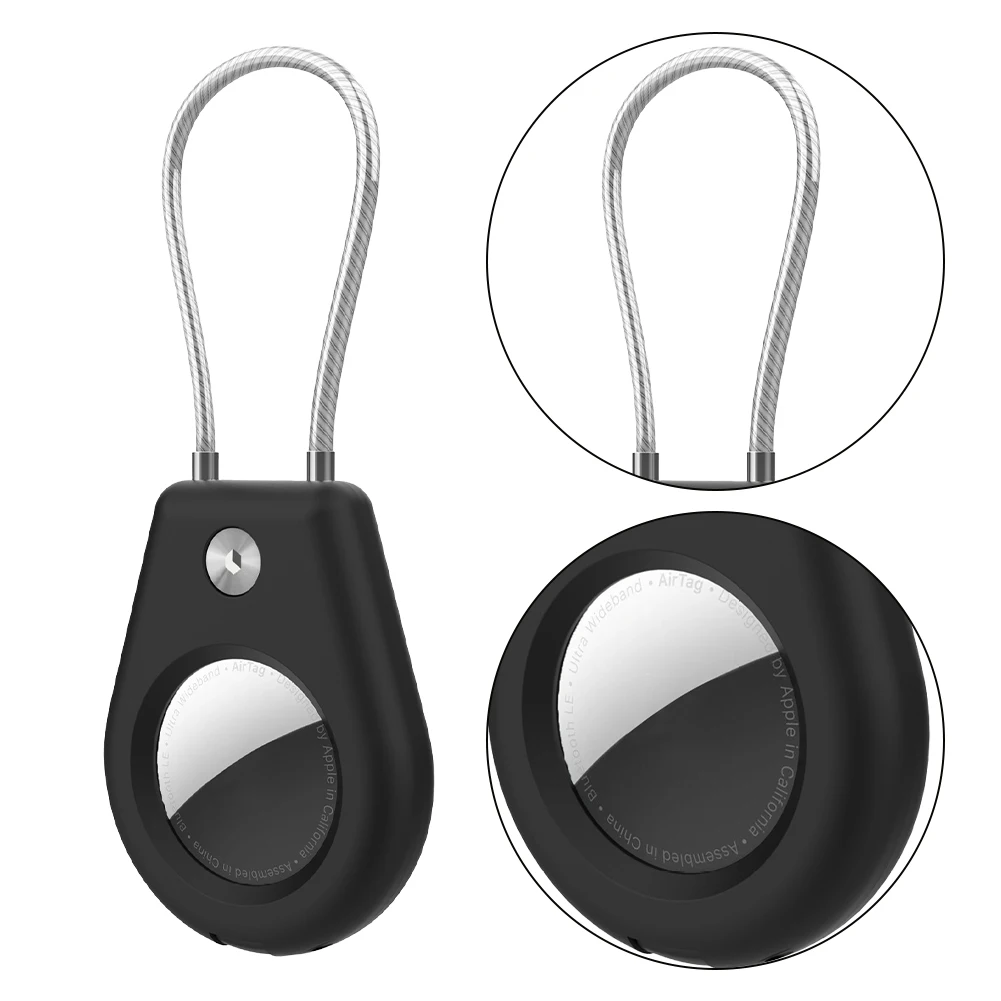 Compatible con soporte para llavero AirTag con Cable de alambre y bordes elevados, funda protectora antipérdida, funda resistente a los arañazos para llavero, llavero, llaves de coche, equipaje