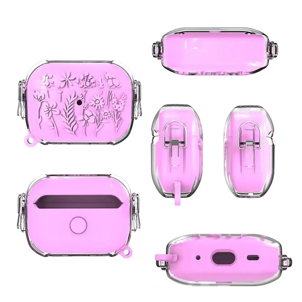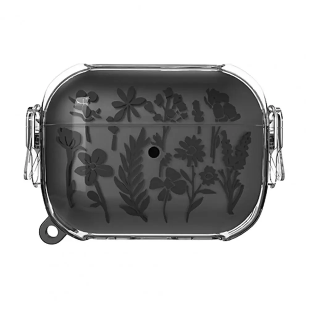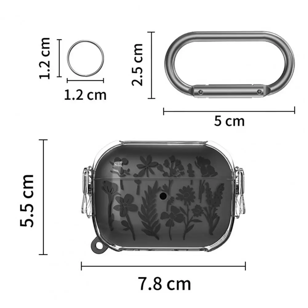 Funda protectora para auriculares con estampado de flores, funda protectora para auriculares inalámbricos con hebilla para protección