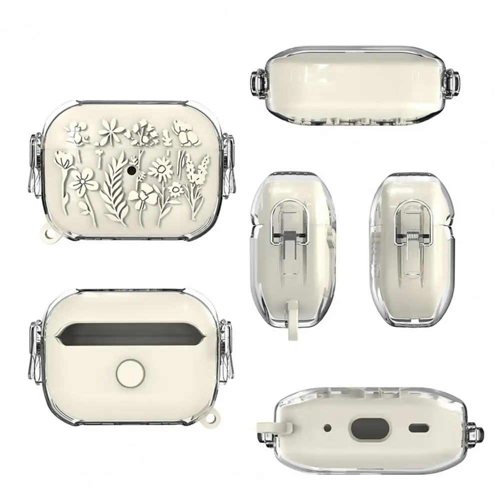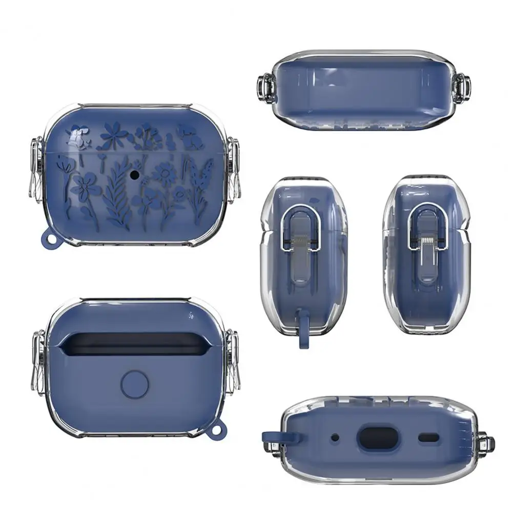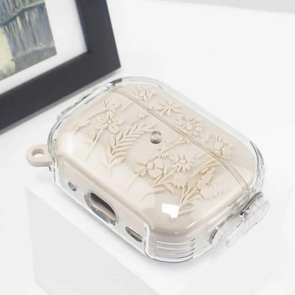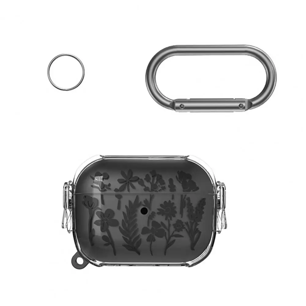 Funda protectora para auriculares con estampado de flores, funda protectora para auriculares inalámbricos con hebilla para protección
