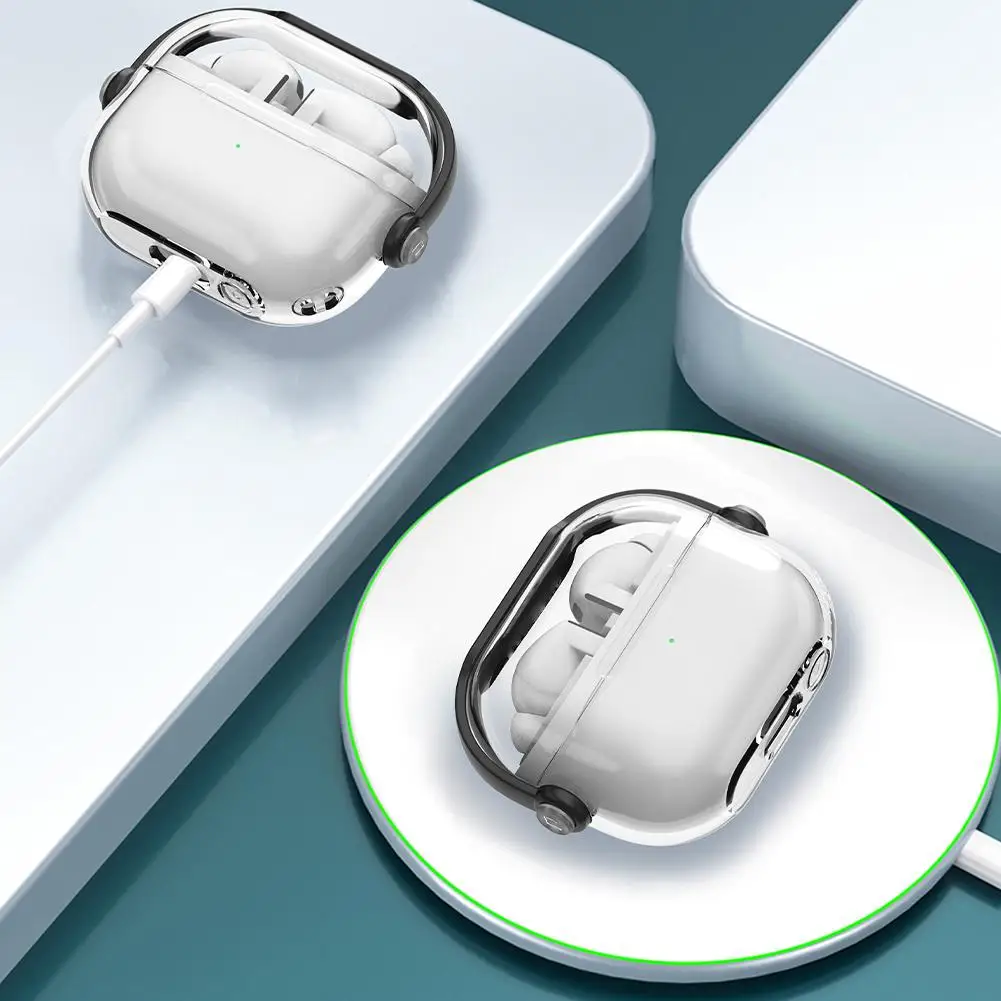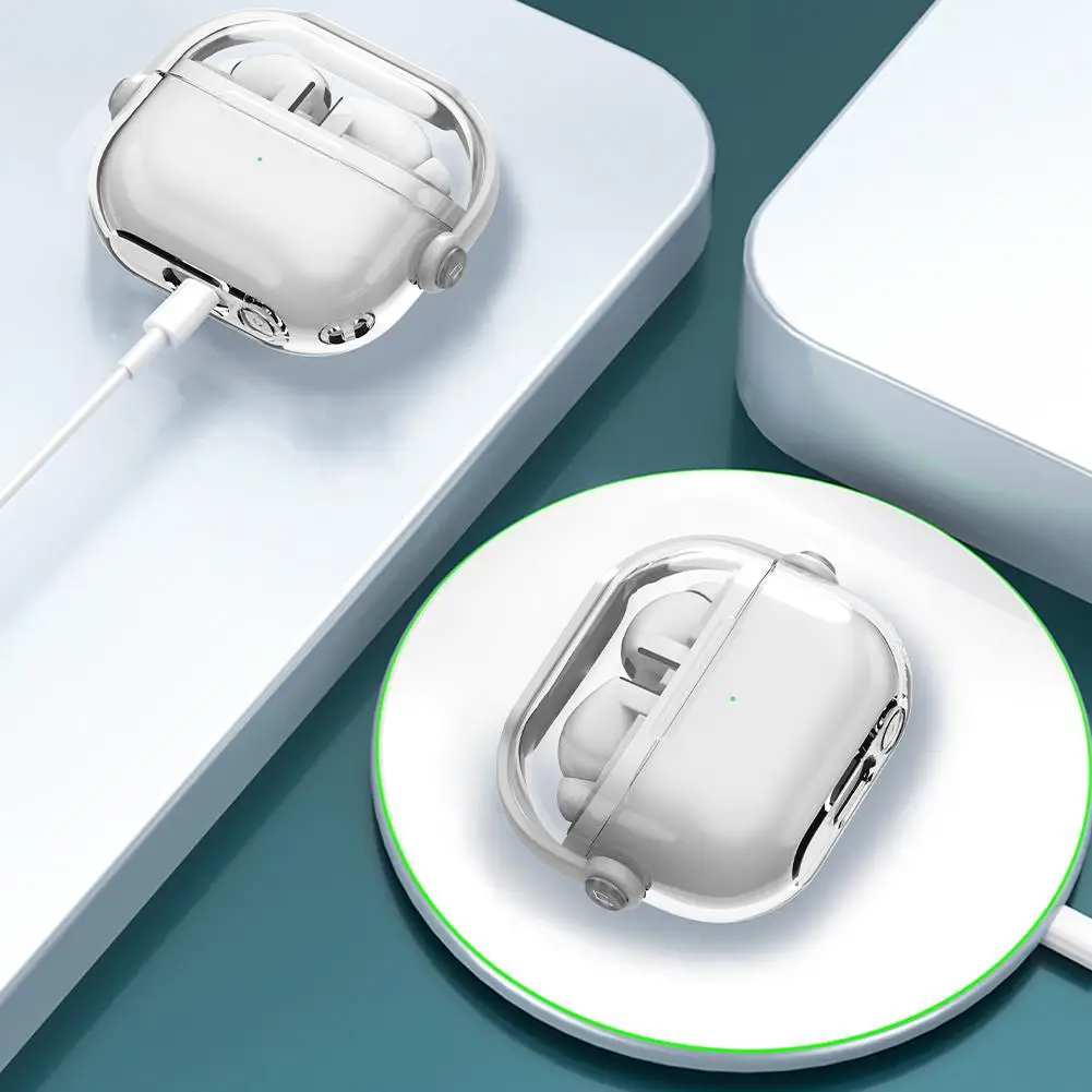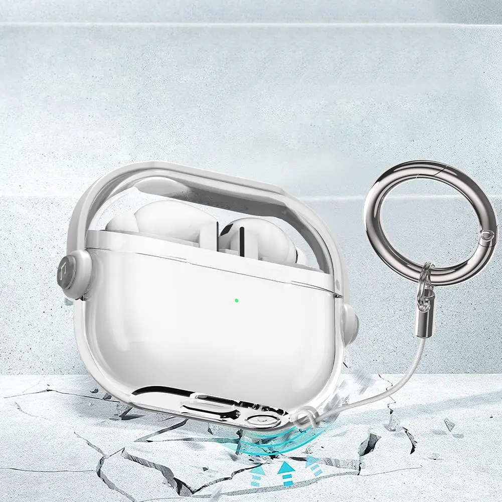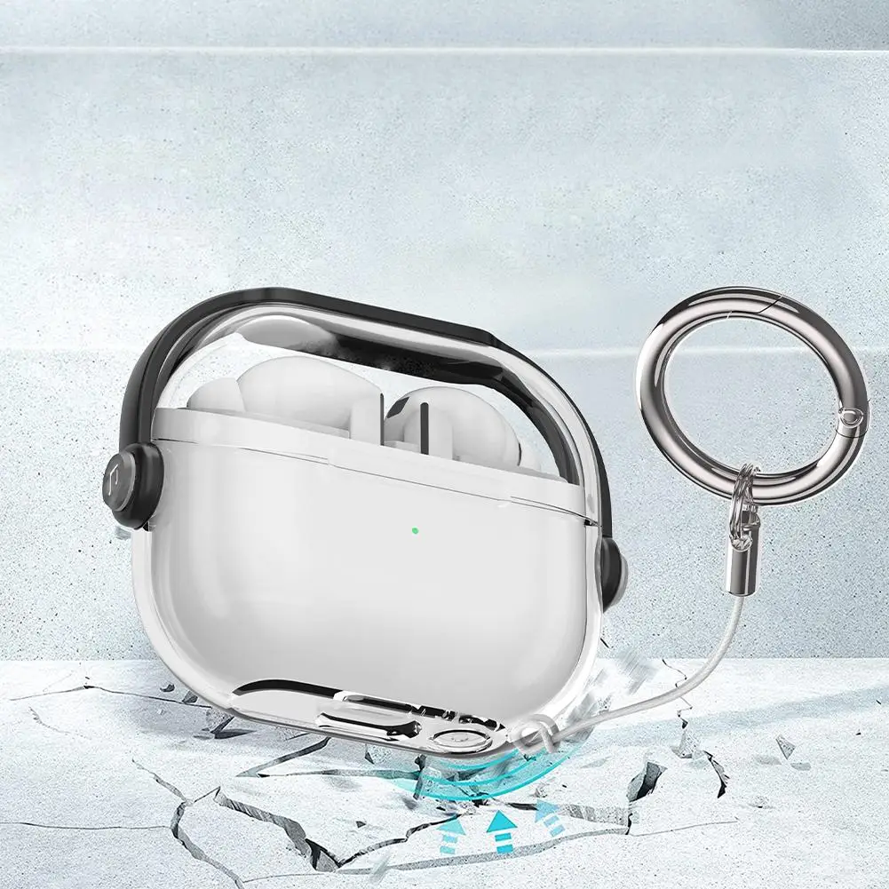 1.Estuche transparente con cerradura creativa, protección total de los auriculares, amortiguación y rebote sin temor a caerse, protección total contra caídas, la tapa puede evitar eficazmente que los auriculares salgan del compartimiento de los auriculares después de caerse.