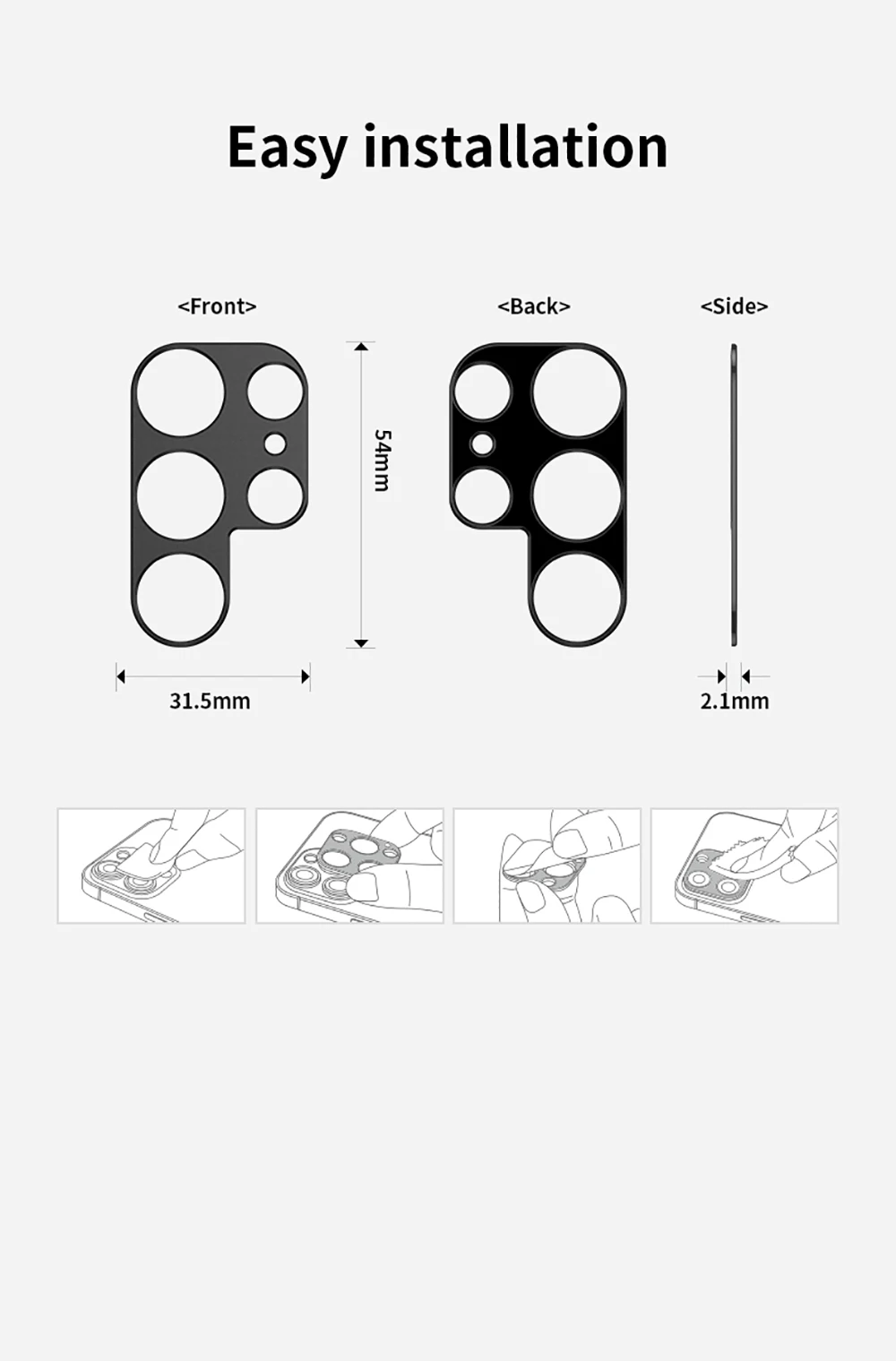 Fácil de instalar: Simplemente retire la película de la lente de aleación de aluminio y ajuste el ángulo y luego suelte la película de la lente de aleación de aluminio que se pegará a la lente automáticamente.