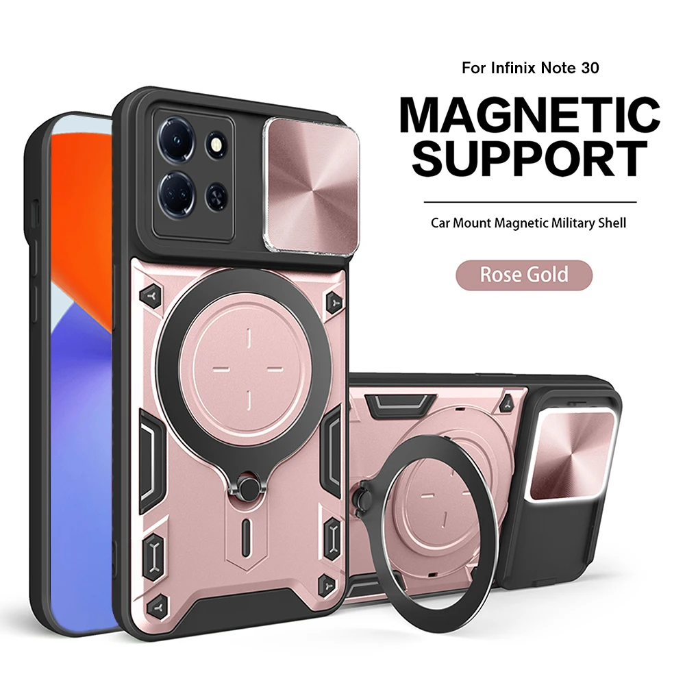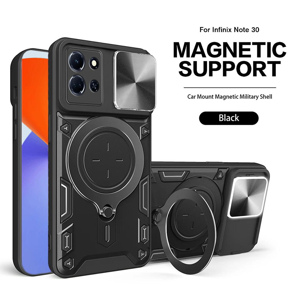 Para Infinix Note 30 Pro Funda protectora de cámara deslizante Infini Note30 30Pro Note30Pro 4G 2023 Soporte de anillo magnético para coche Funda Capa