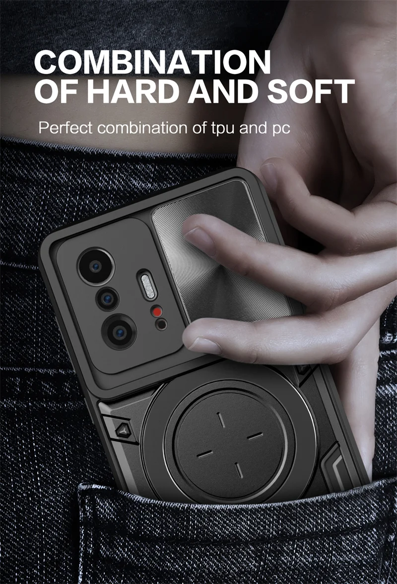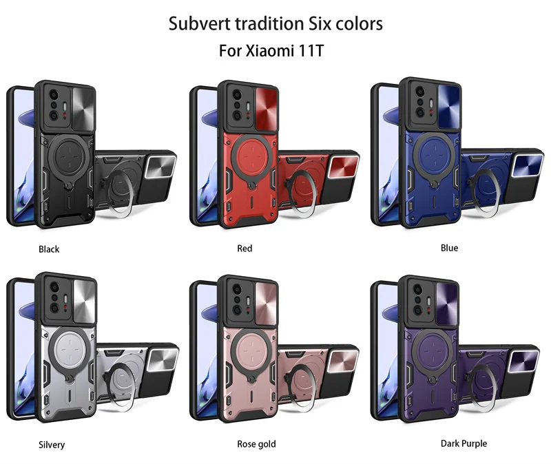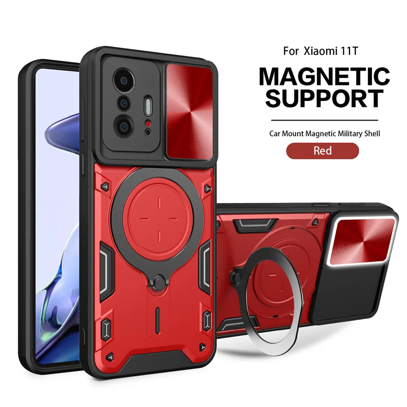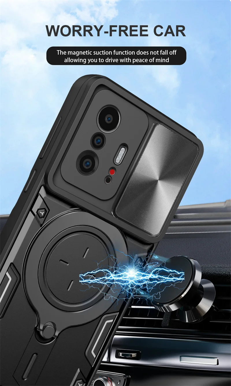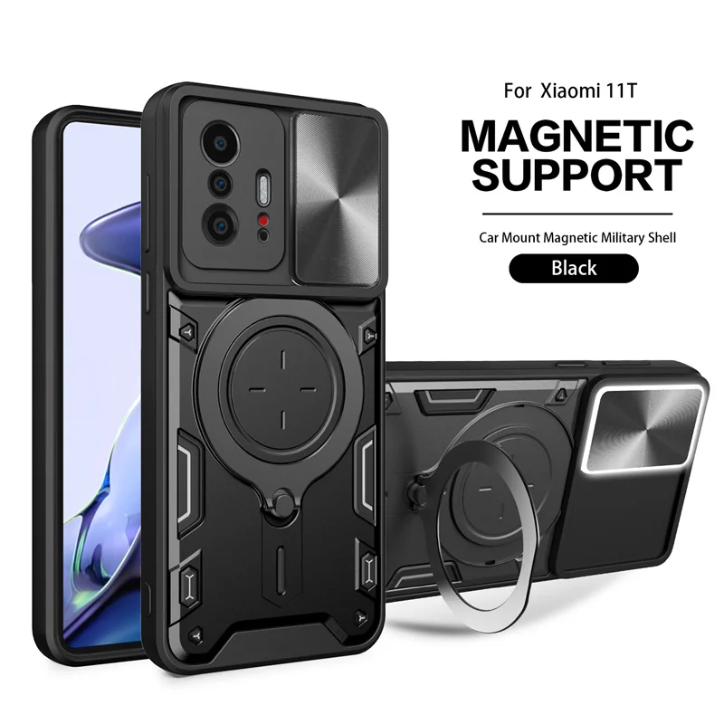 Comprar Funda protectora de cámara deslizante Mi11T, carcasa trasera de anillo para Xiaomi Mi 11 T 11 T Pro, soporte magnético para coche