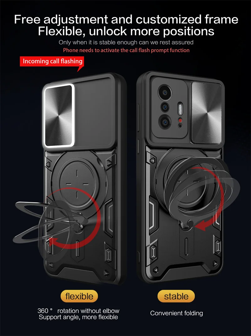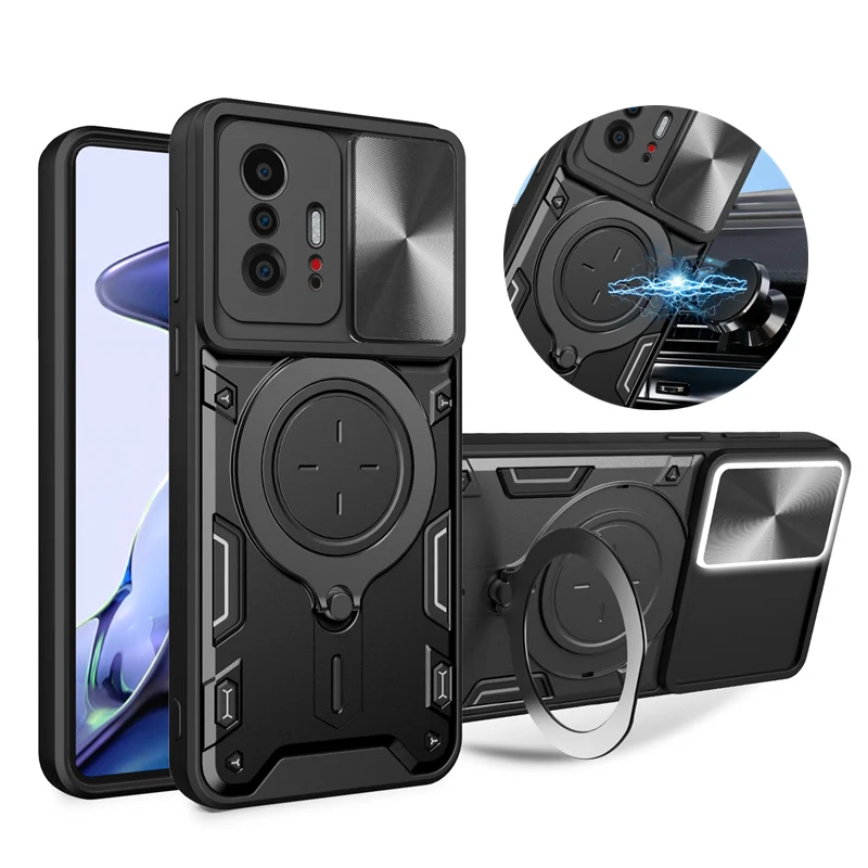 Comprar Funda protectora de cámara deslizante Mi11T, carcasa trasera de anillo para Xiaomi Mi 11 T 11 T Pro, soporte magnético para coche