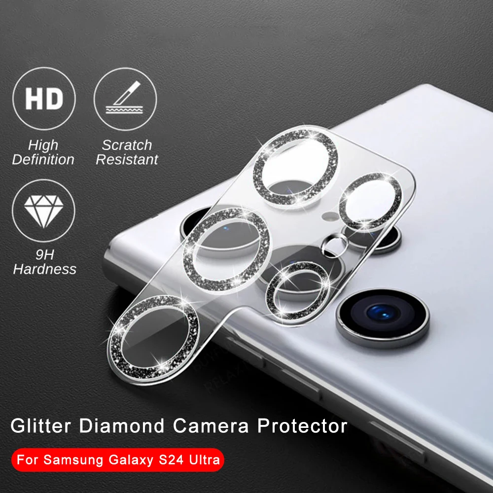 Funda protectora de cámara S24Ultra Glitter Diamond para Samsung Galaxy S24 Ultra 5G, funda de lente de vidrio templado Sumsung S 24 Plus