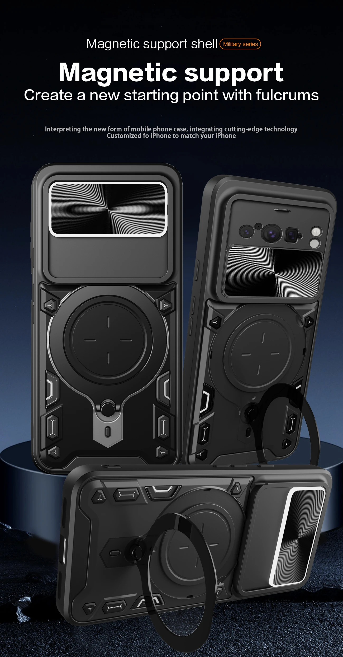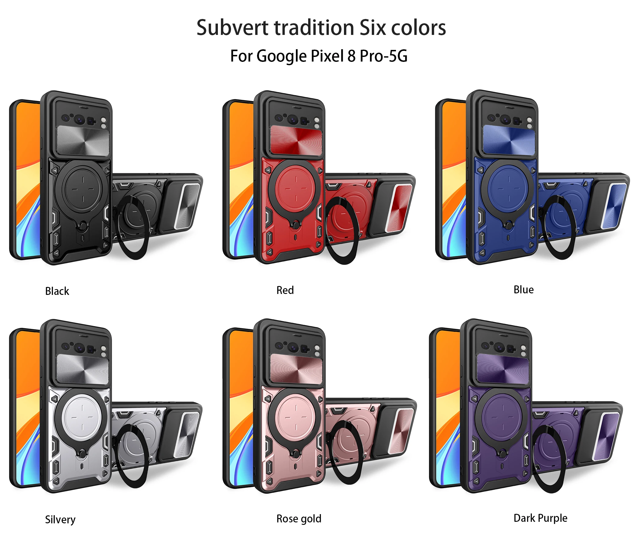 Comprar Funda protectora de cámara magnética Magsafe para Google Pixel 8 Armor cubierta trasera de anillo de Metal híbrido para Google Pixel 8 Pro