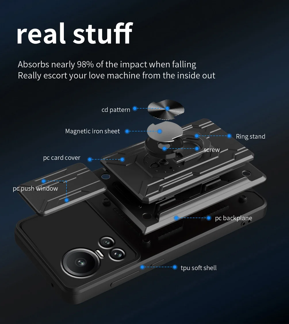 Comprar Funda protectora para cámara con ranura para tarjeta, cubierta de anillo híbrido para Reno 10 Pro Reno10 Reno 8T 8 Pro 8Z + 7 Lite 7Z 6 5G 5 Find X5 Lite X3 Armor