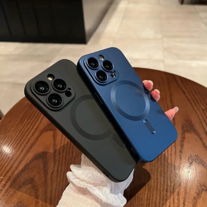 Comprar Funda protectora de cámara de silicona líquida para iPhone 12, 13, 14, 15, 16 Pro Max Plus, fundas Magsafe, funda de carga magnética para iPhone 16