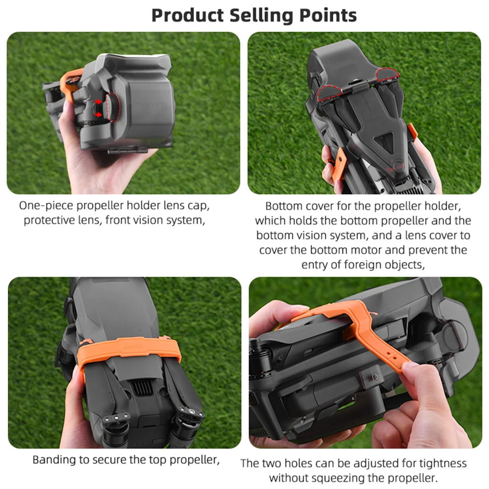 2.-Diseño de ajuste:Fabricada con moldes de drones reales, la funda protectora del cardán encaja perfectamente en su dron, lo que garantiza una protección óptima a todas las partes del dron.Además, la funda protege las hélices delanteras y traseras cuando está plegada.