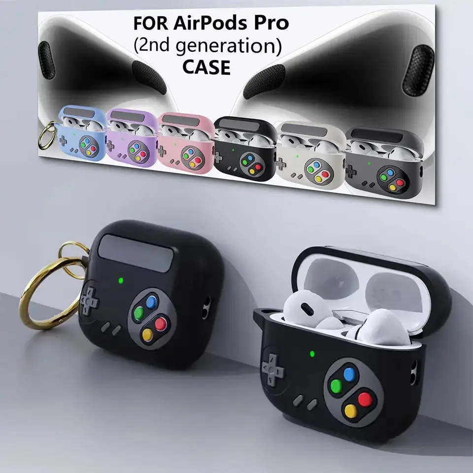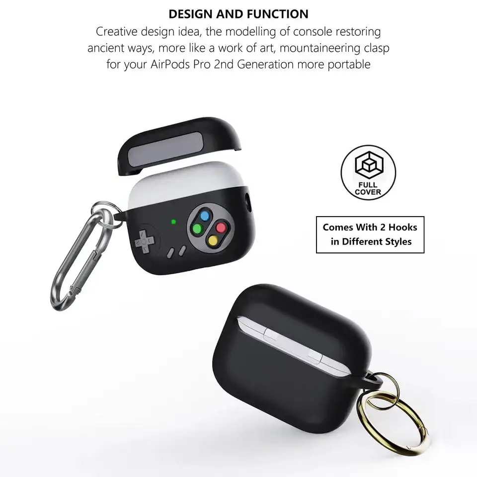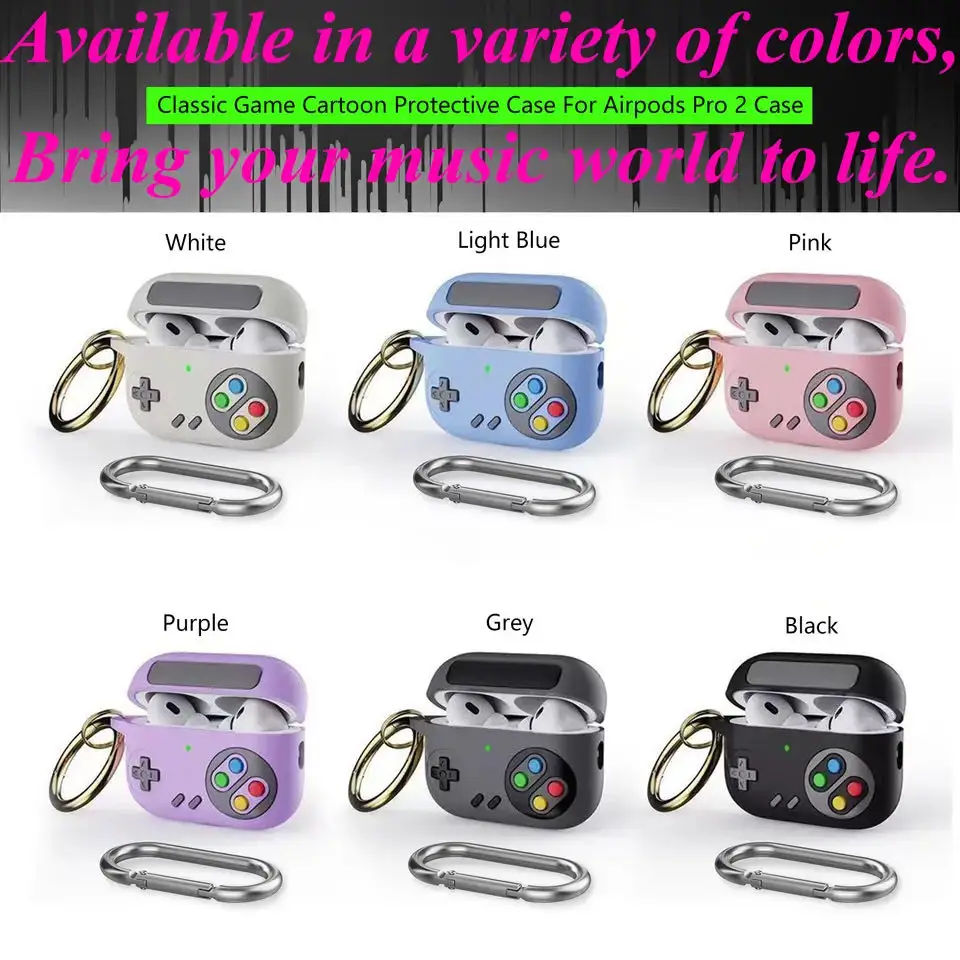 Funda protectora clásica de dibujos animados ipods pro de segunda generación para AirPods Pro 2, funda de silicona gruesa, viene con 2 ganchos de estilo