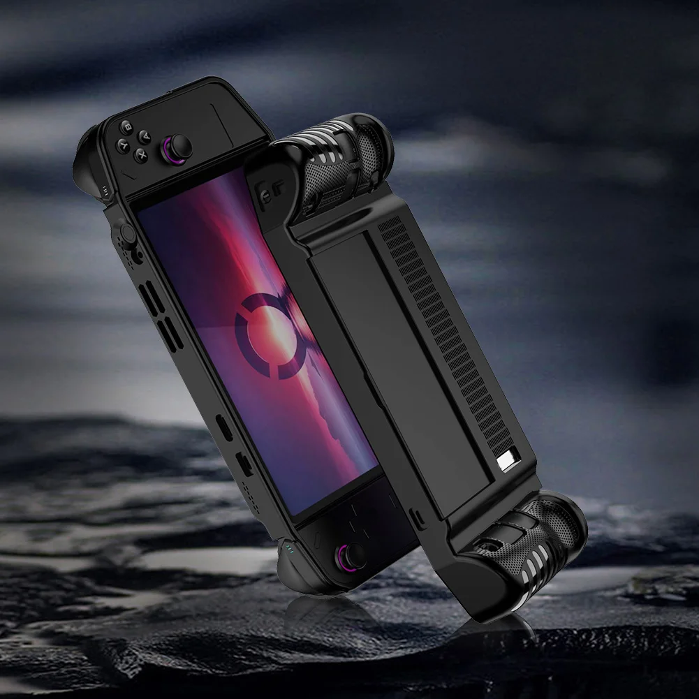 2. Diseño del soporte:Innovador diseño de ventana de soporte de TPU de cubierta protectora, soporte estable, liberando sus manos. Puede admitir la consola de juegos, combinando perfectamente la funda protectora con la base del soporte, lo que le permite conectar mejor la consola de juegos y mejorar la experiencia de juego.