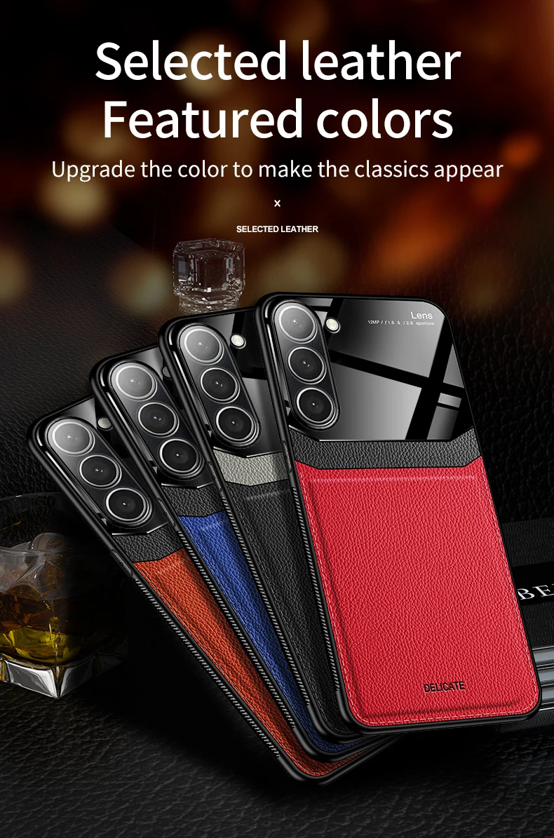 Funda protectora de cuero genuino Len para Samsung Galaxy S21 S20 S22 S23 S10 S9 S8 Ultra Fe Note 8 9 10 20 Plus, funda de lujo