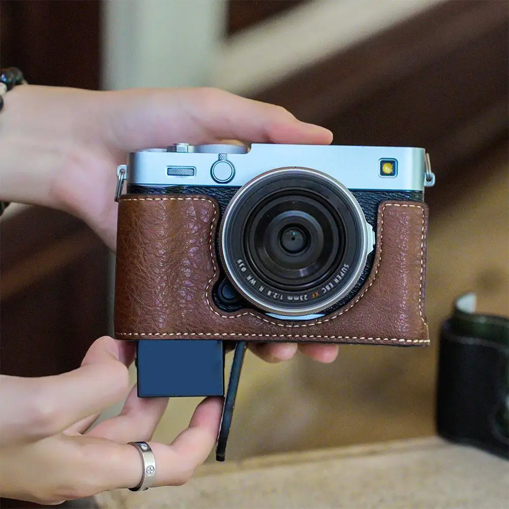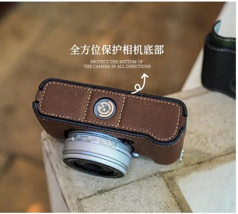 Funda protectora para fujifilm x-e5, funda protectora para cámara, bolsa para cámara, funda de cuero con base de media cubierta, accesorios