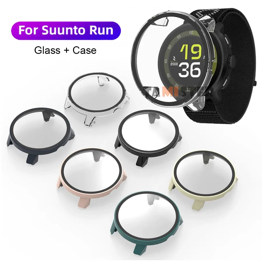 Funda protectora dura de PC para SUUNTO RUN, carcasa de cubierta de reloj inteligente + Protector de pantalla de vidrio templado para Suunto Run, accesorios de marco de parachoques