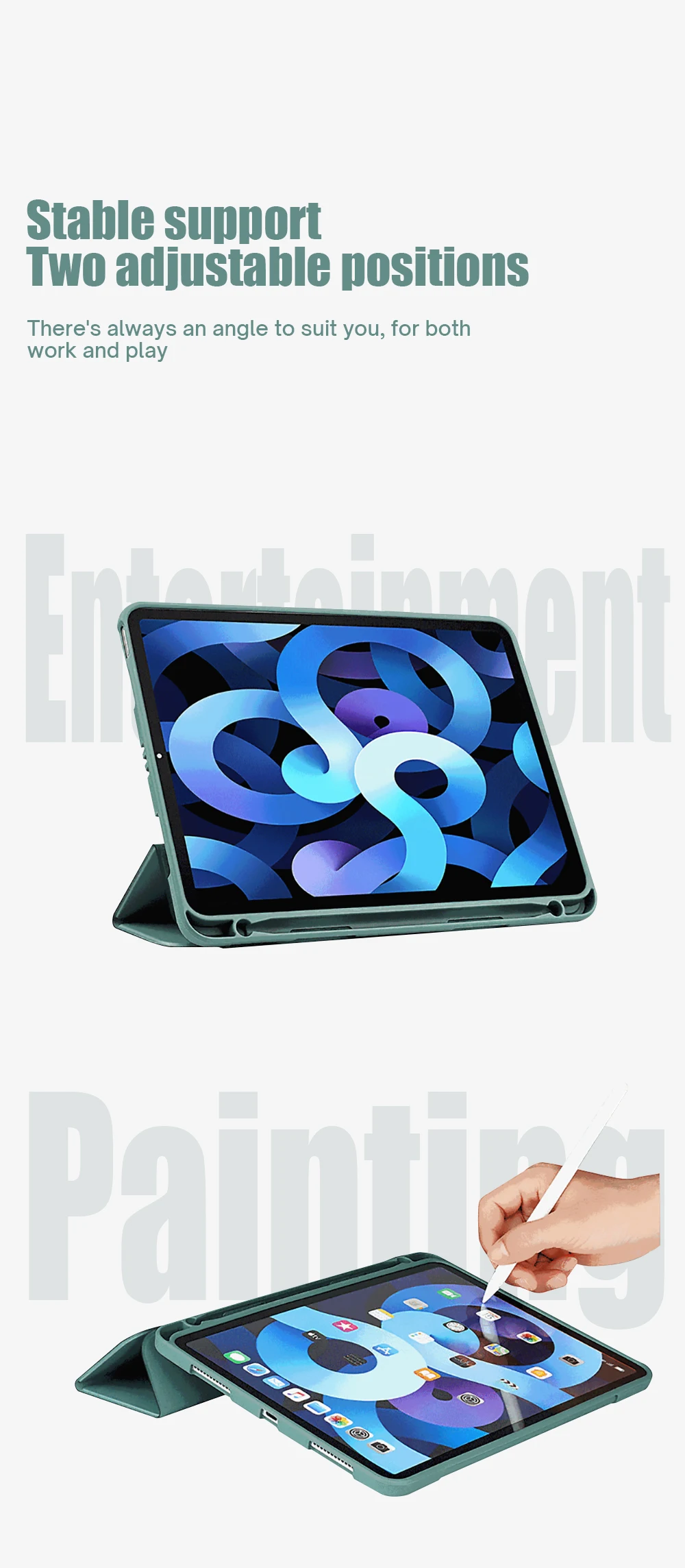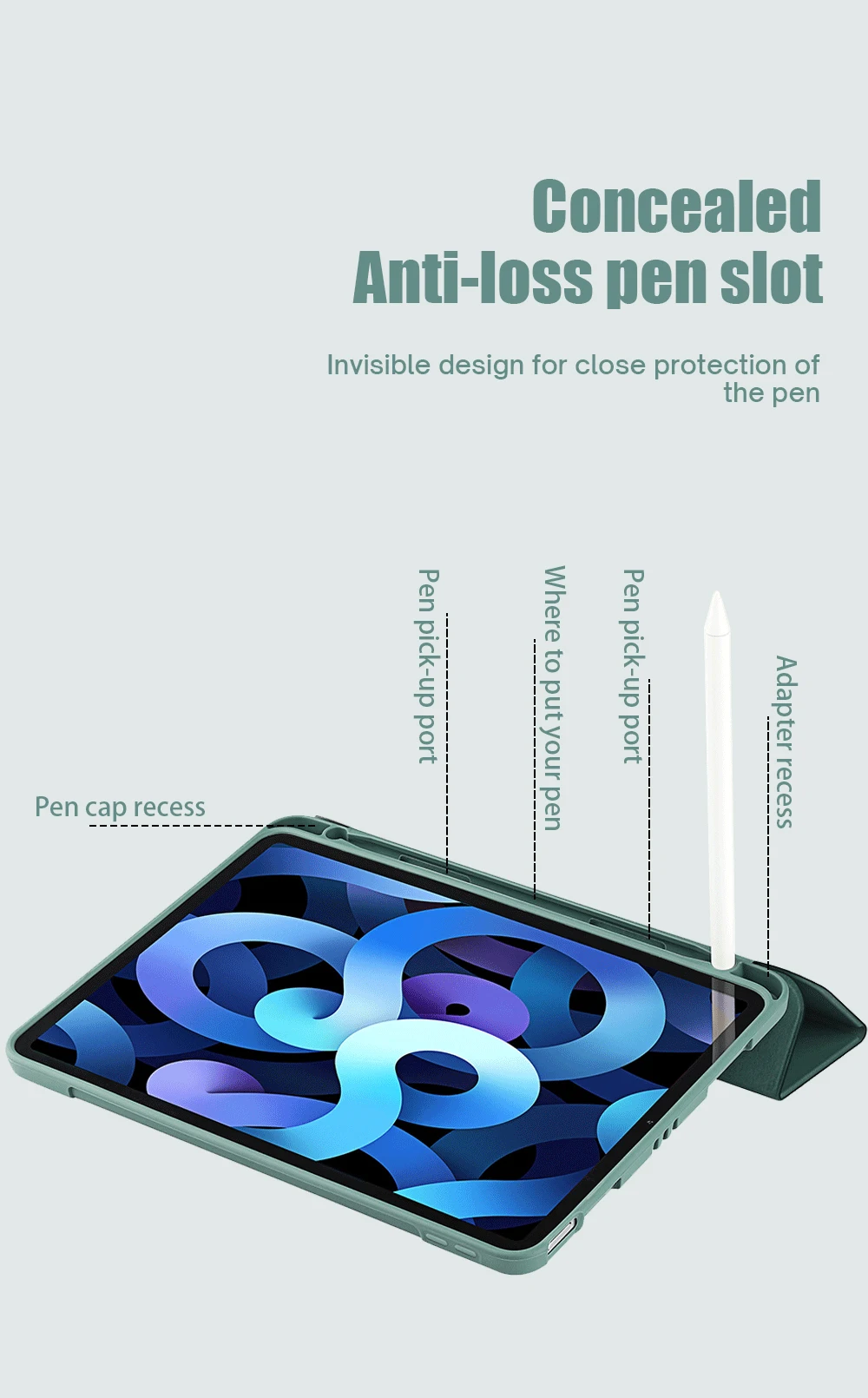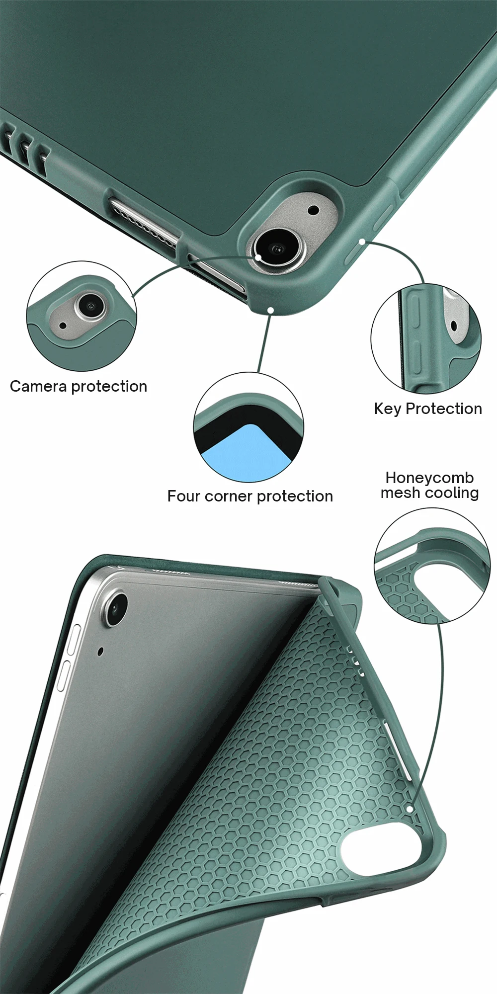 La funda inteligente para ipad está completamente envuelta para adaptarse a la curvatura del ipad y disipar el impacto de las caídas.