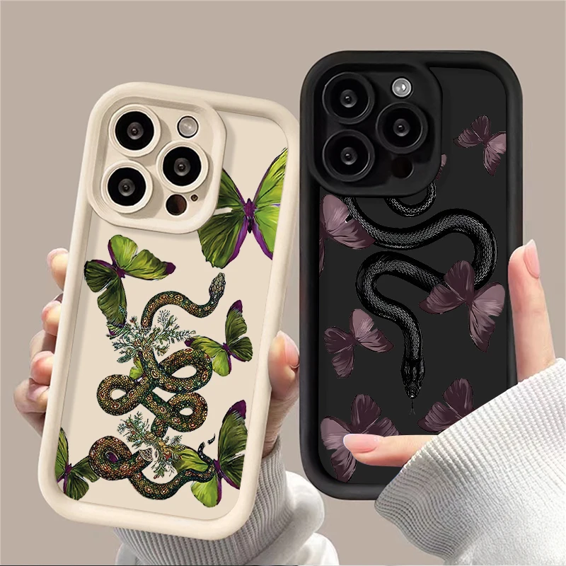 Comprar Funda protectora con estampado gráfico de mariposa y serpiente para iPhone 16 15 14 13 12 11 Pro Max X XS X S Max XR SE 2020 7 8 Plus iphone16
