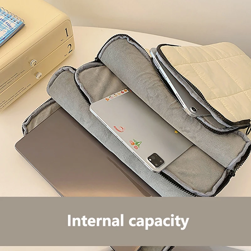 3.Diseño de contenedor interior: hay un contenedor interior de cojín especial dentro de la bolsa de la computadora, que puede proteger mejor su computadora y evitar que la vibración externa o el impacto cause daños a la computadora.