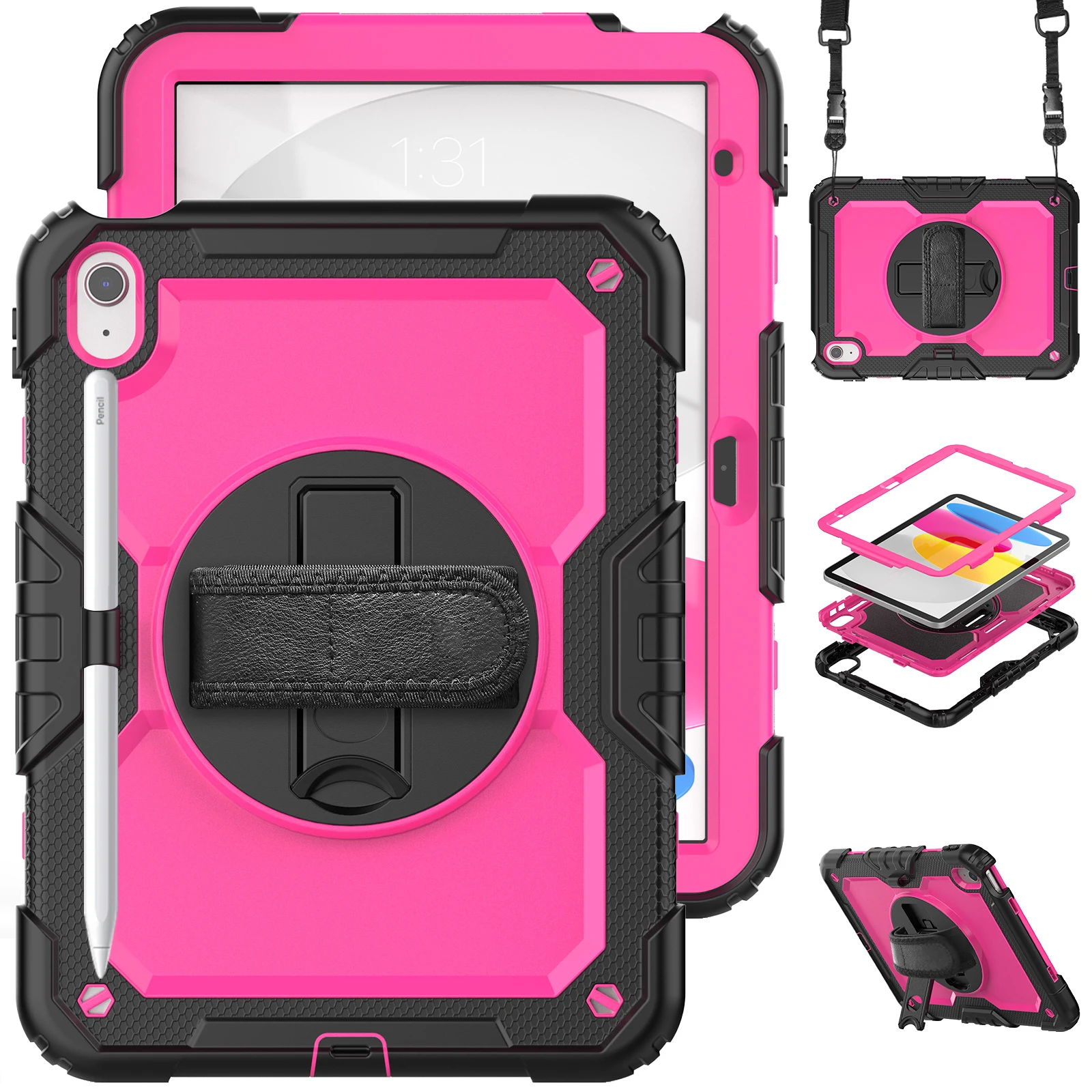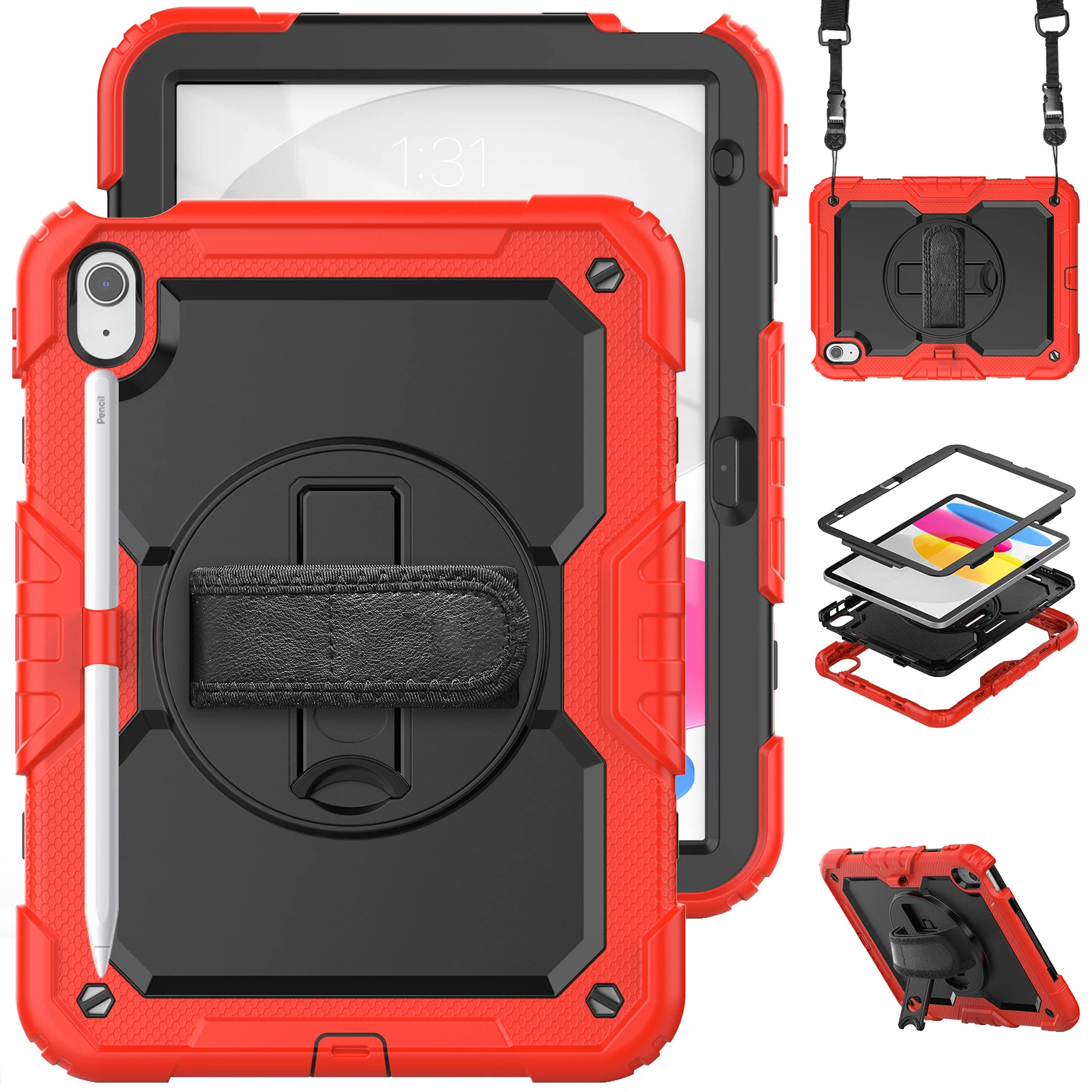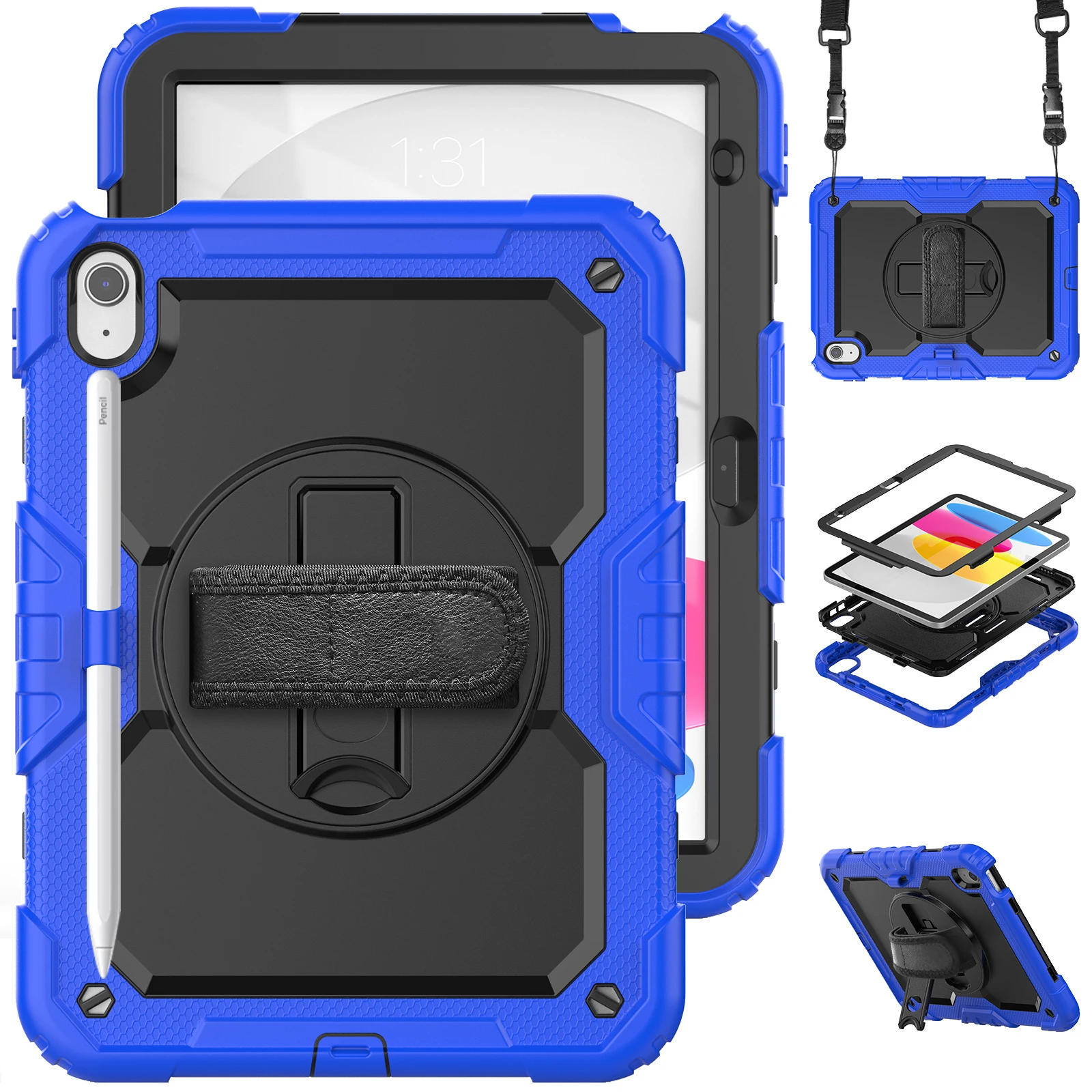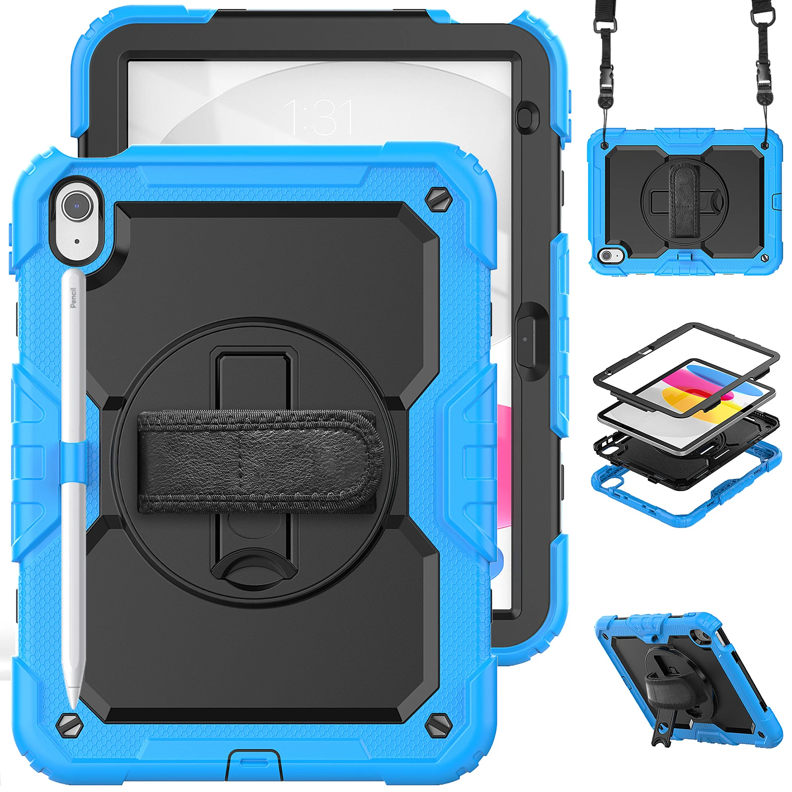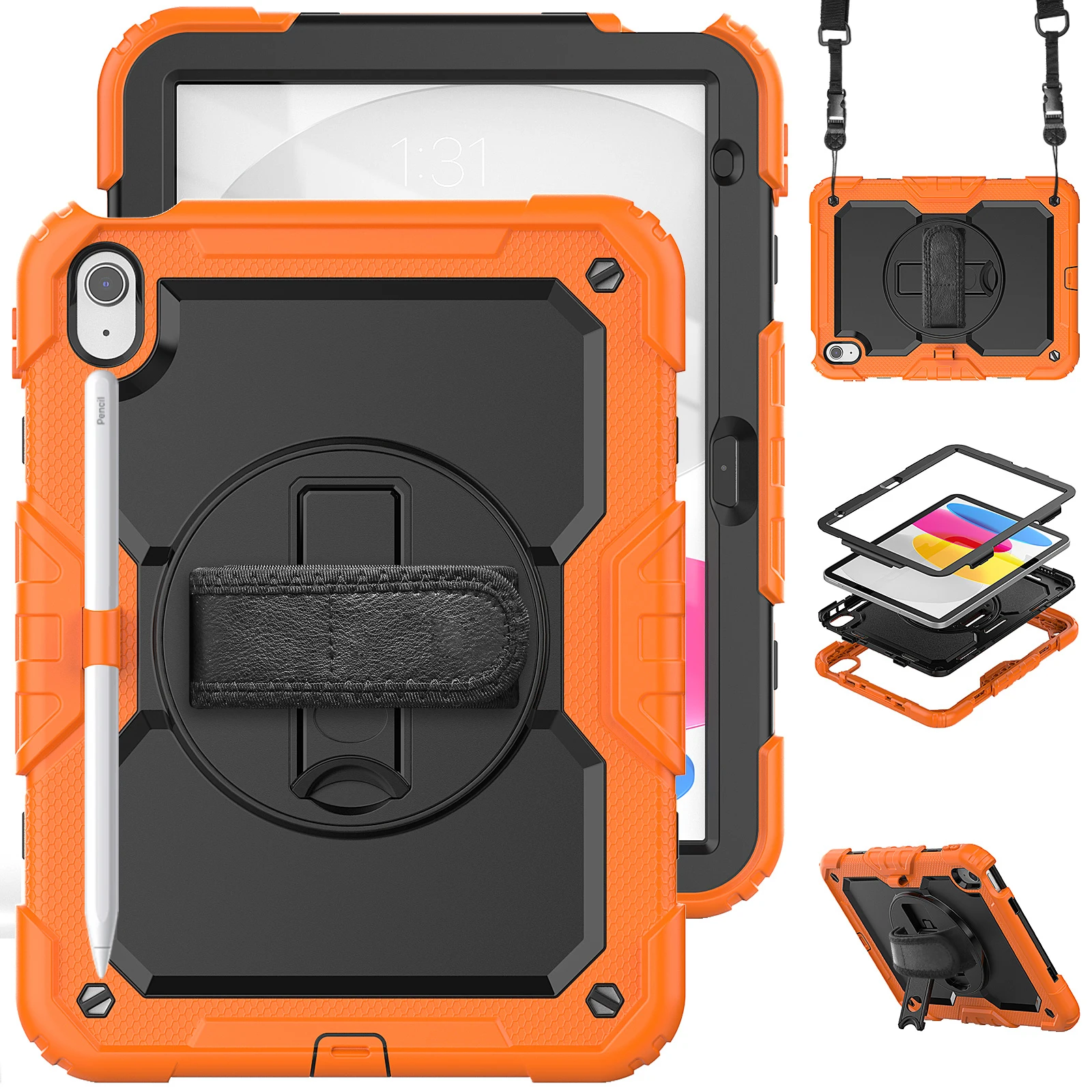 Funda protectora para iPad de décima generación, cubierta protectora de alta resistencia, 2022 M2, iPad Air 5 / 4 Pro 11, portalápices, correa de hombro y mano