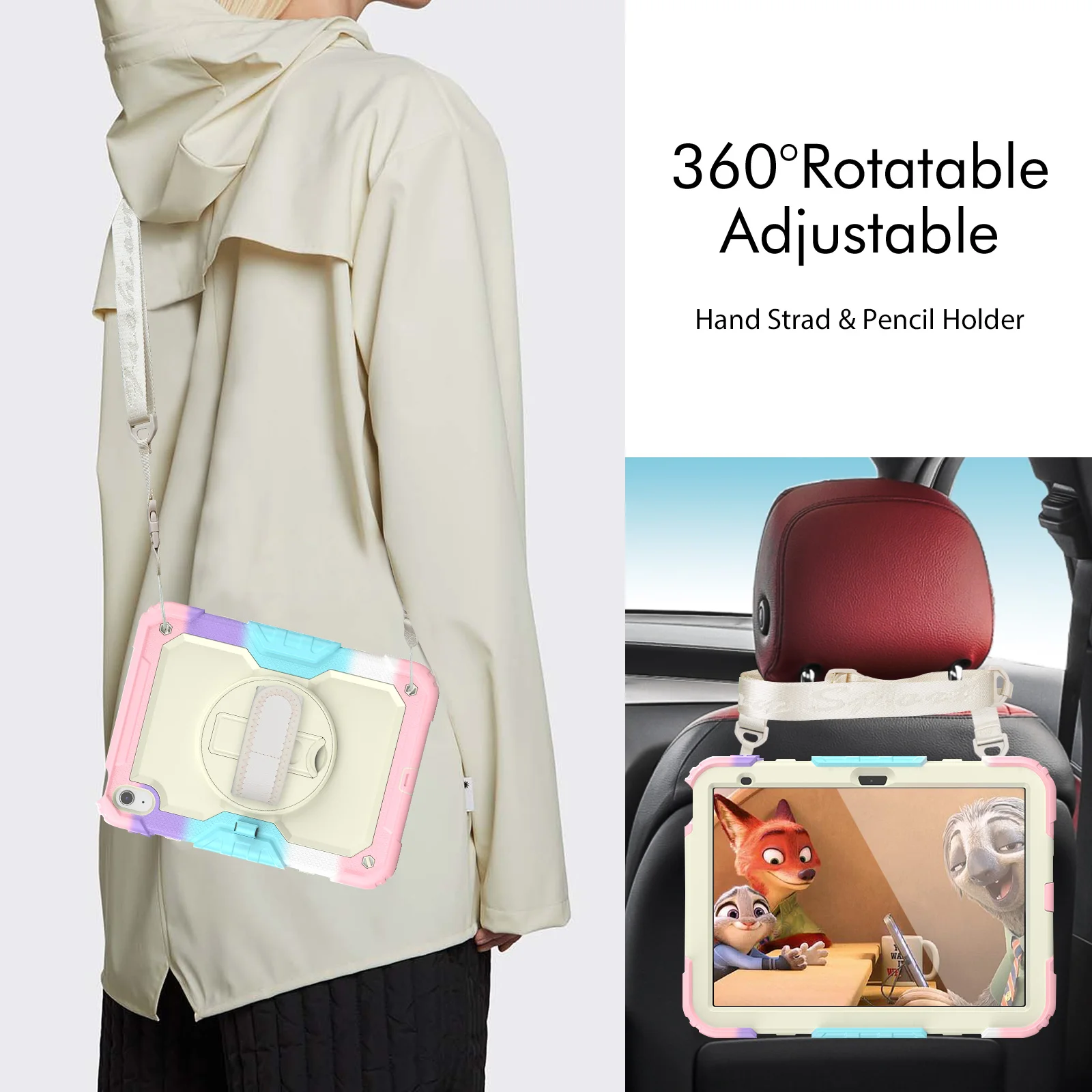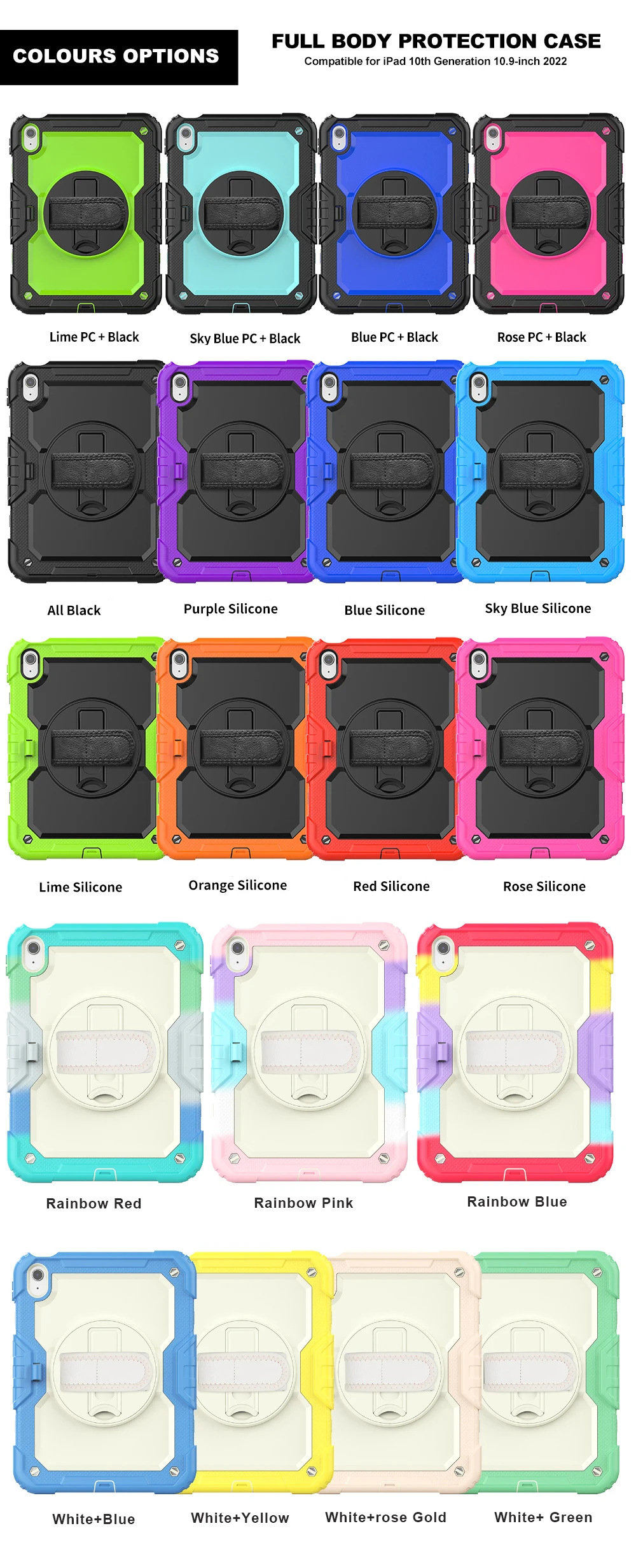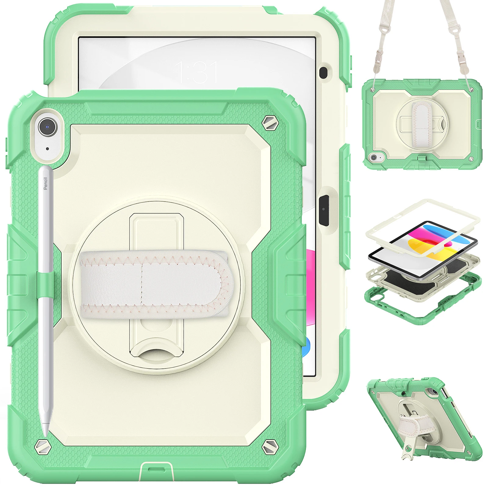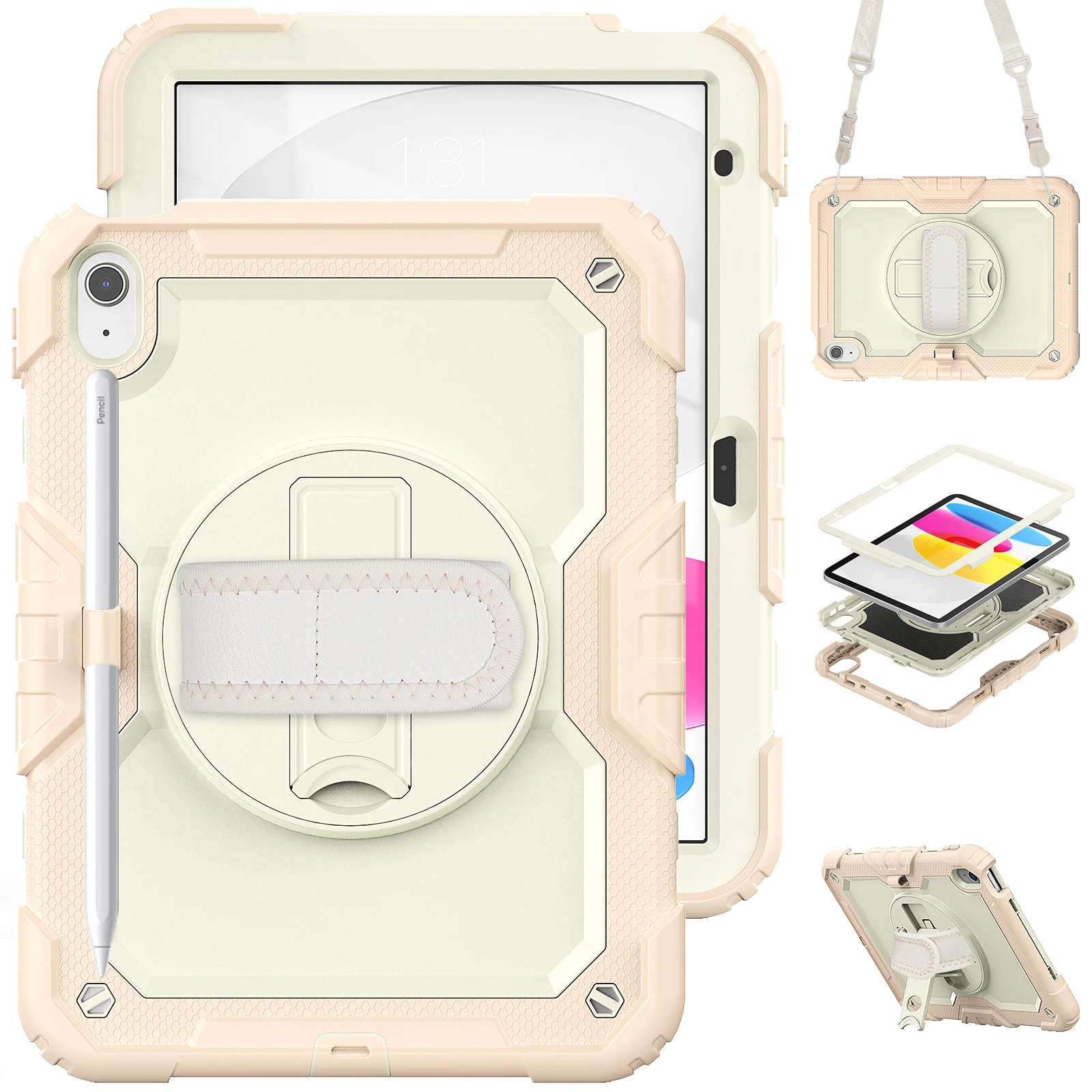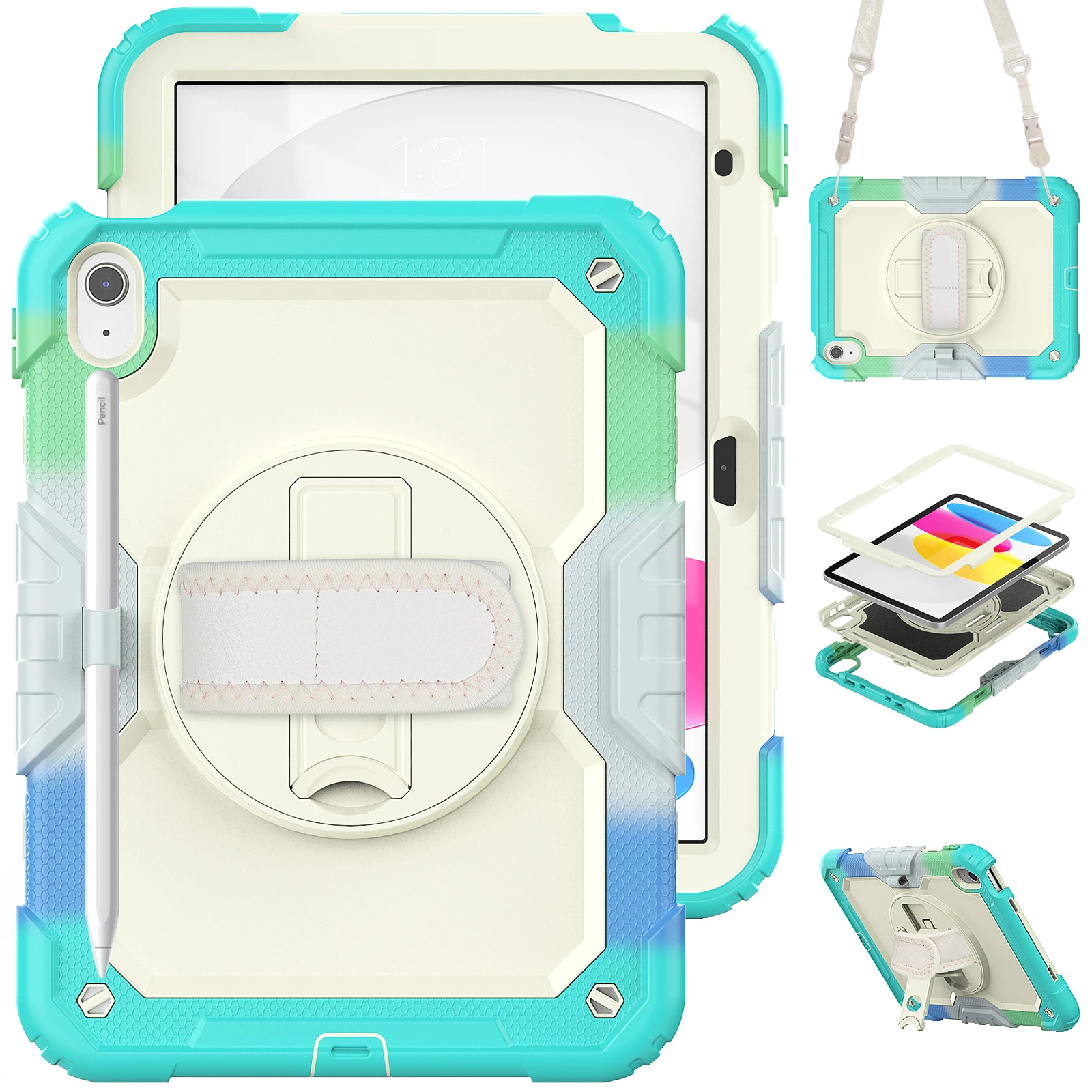 Funda protectora para iPad de décima generación, cubierta protectora de alta resistencia, 2022 M2, iPad Air 5 / 4 Pro 11, portalápices, correa de hombro y mano