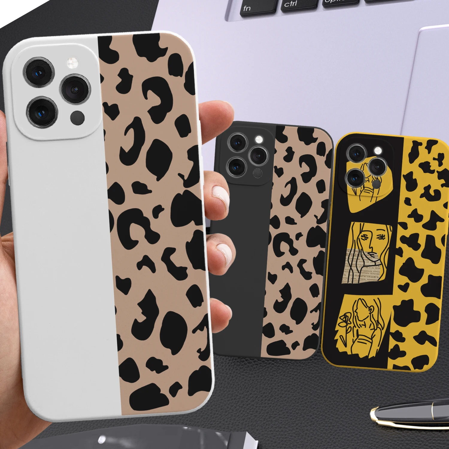 Para iPhone 11 12 13 Pro Max Mini 8 7 Plus X XS XR funda protectora bonita estampado leopardo chica moda caramelo funda de silicona suave