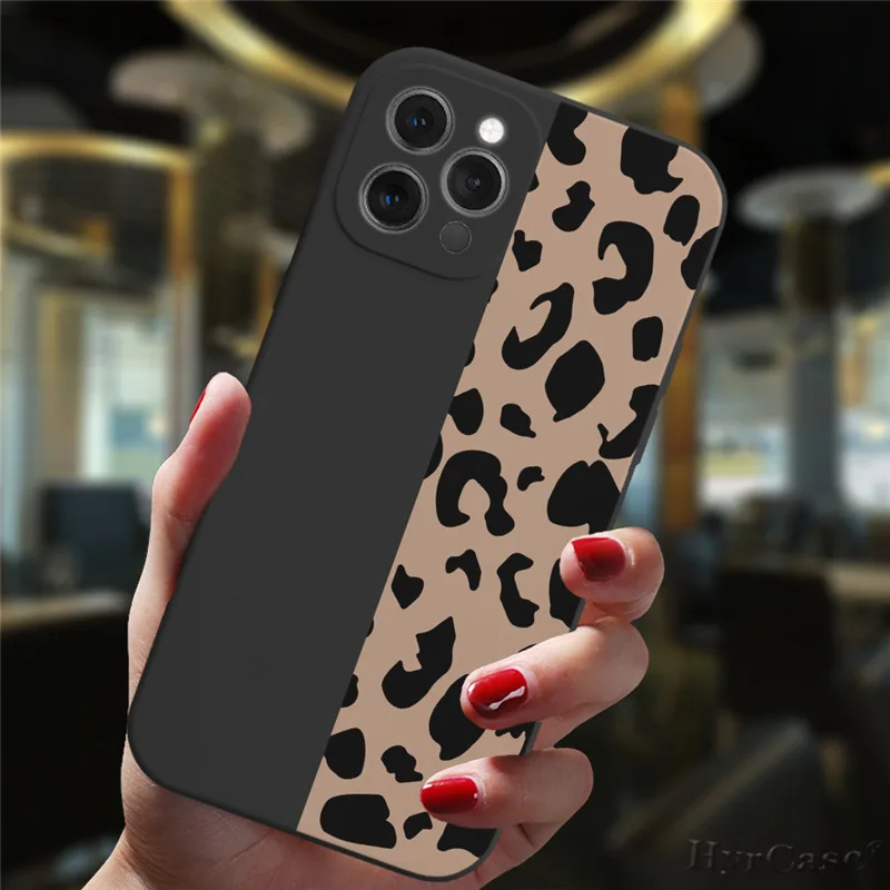 Comprar Funda protectora para iPhone 11 12 13 Pro Max Mini 8 7 Plus X XS XR, bonita funda de silicona suave con estampado de leopardo para chica