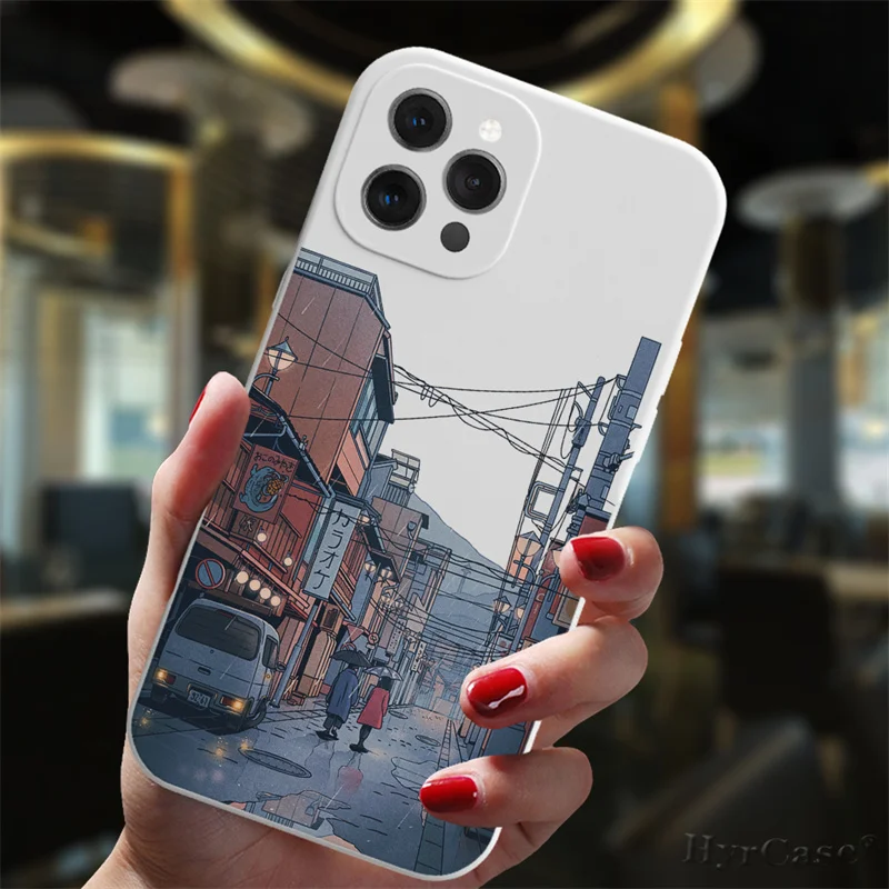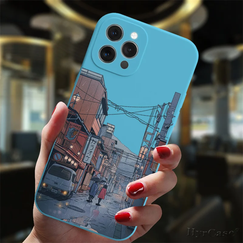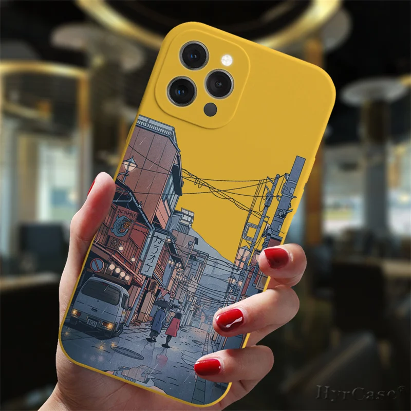 Para iPhone 13 11 12 14 Pro Max Mini 14Plus funda protectora moda Japón coreano puesta de sol paisaje Popular Candy cubierta de silicona