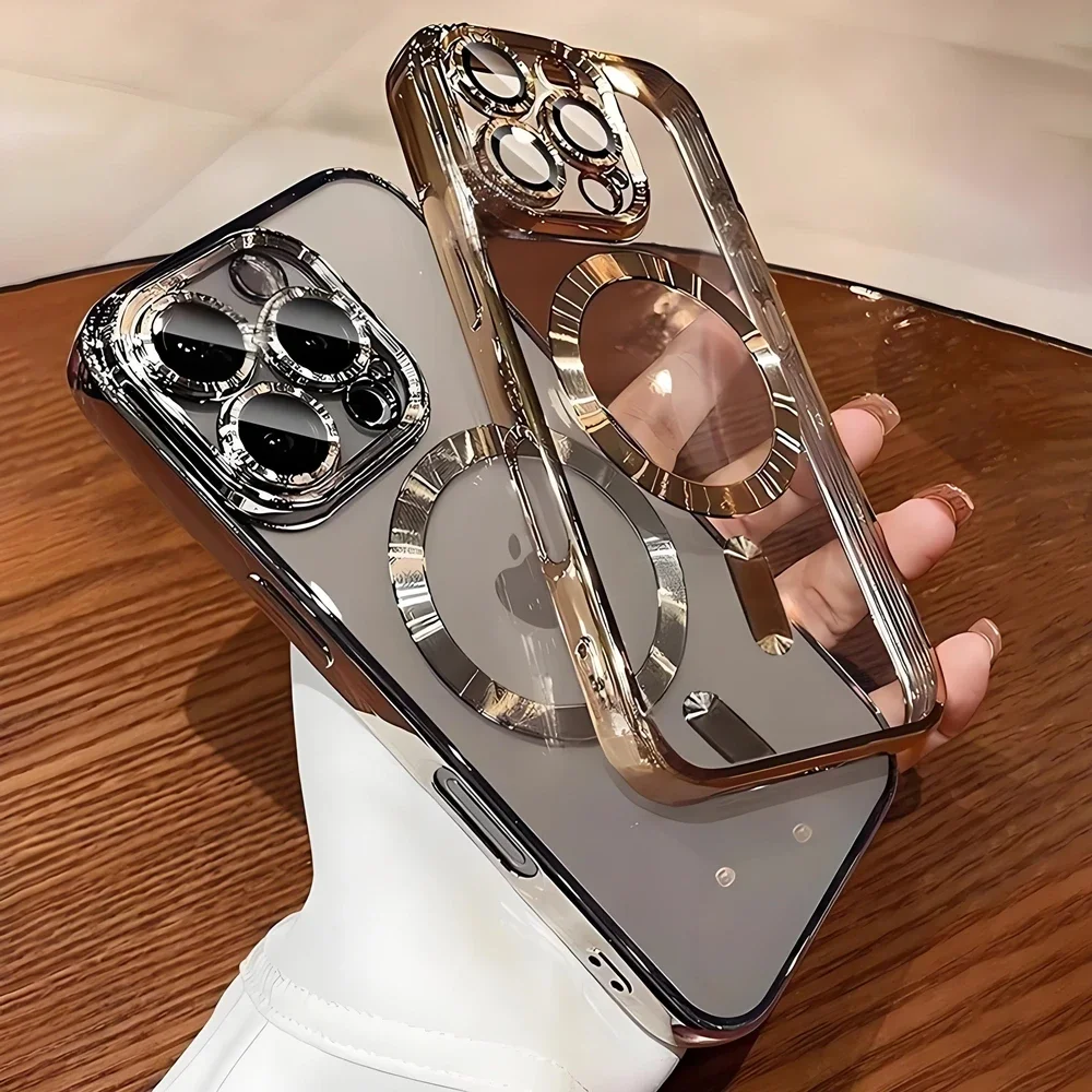 Funda protectora de lente de cámara con revestimiento magnético para iPhone 16 15 14 Plus 13 12 11 17 Pro Max, funda de carga inalámbrica Magsafe