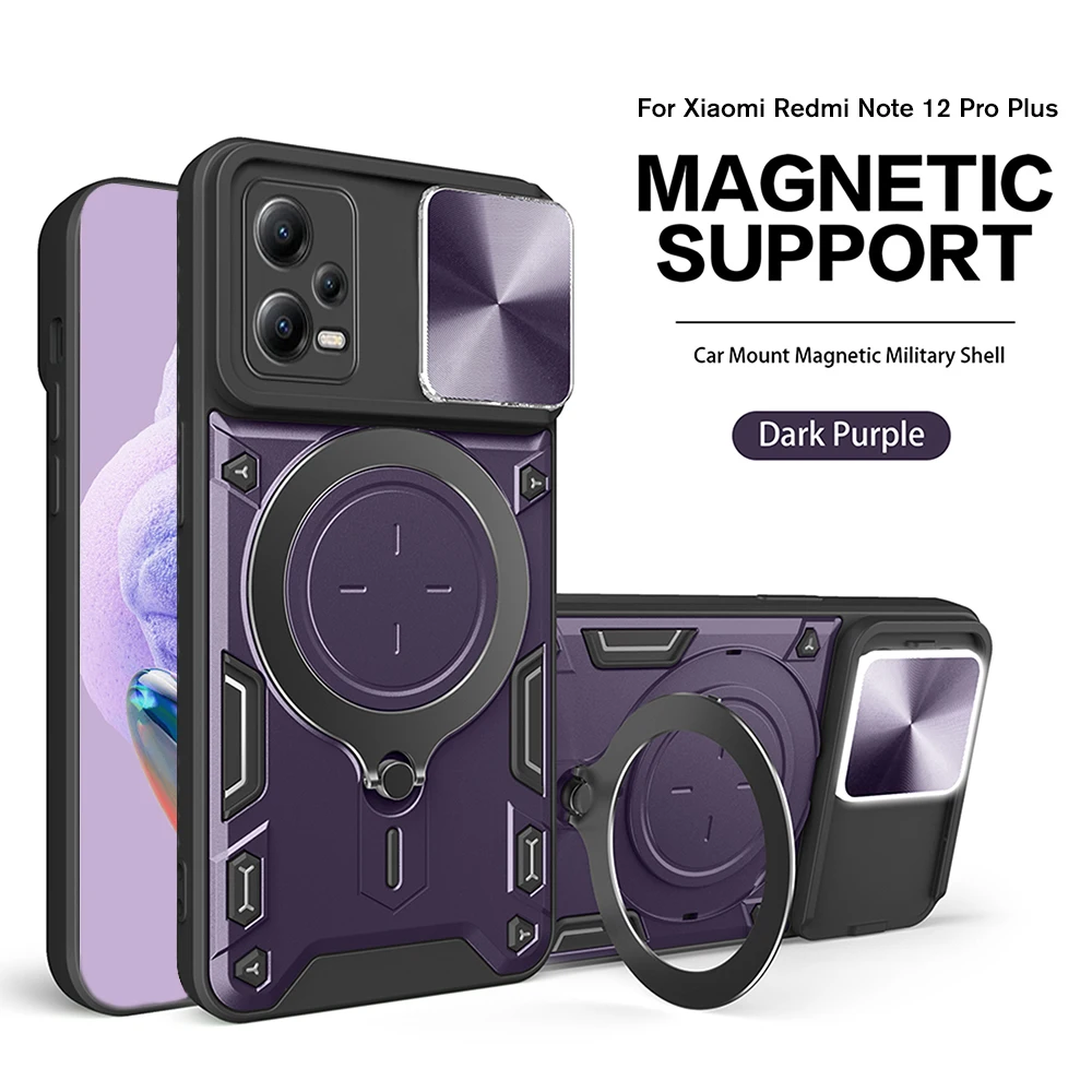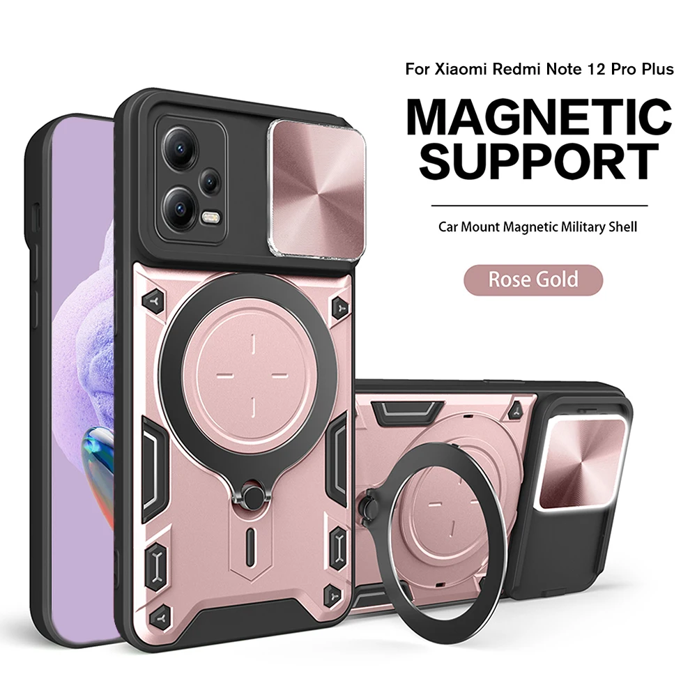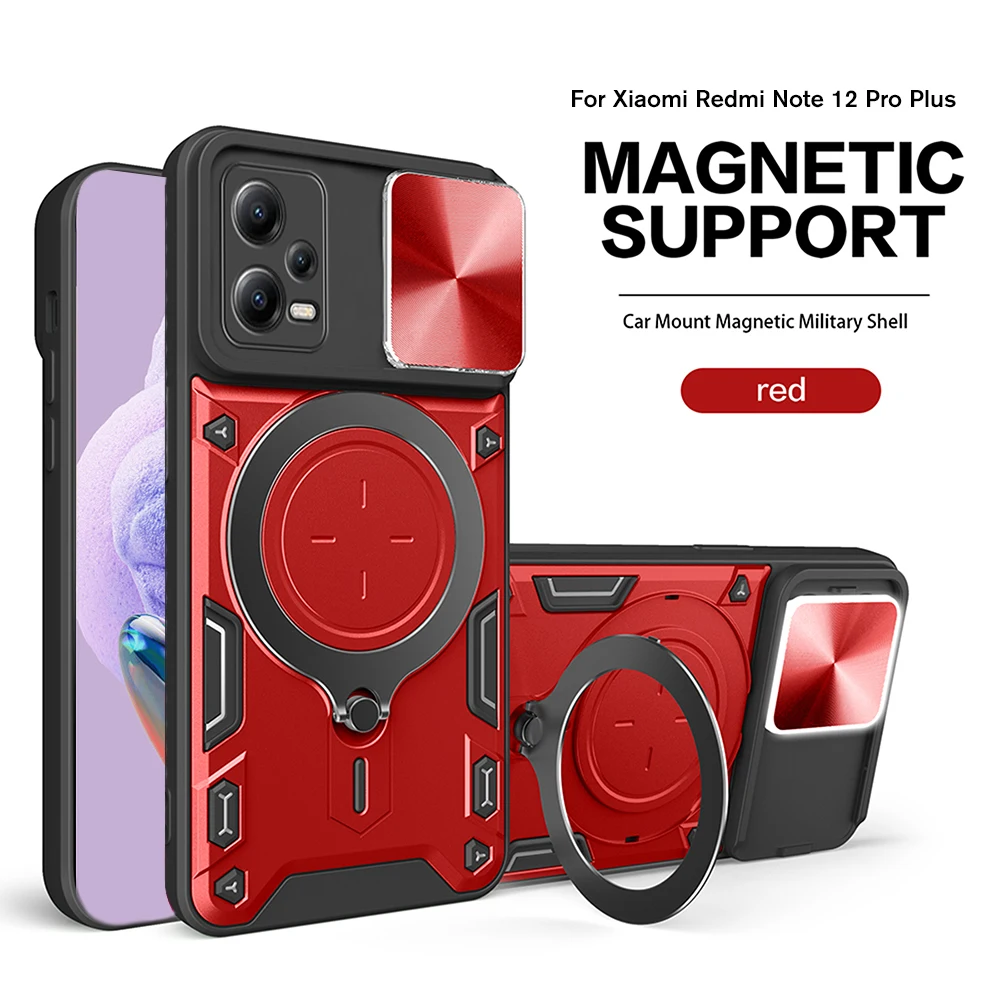 Comprar Funda protectora con lente deslizante a prueba de golpes para Redmi Note 12 Pro Plus 5G, Funda con soporte magnético, anillo, no 12, 12S, 4G