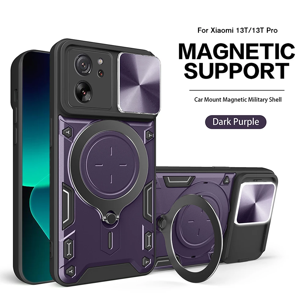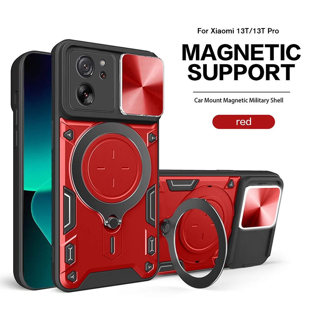 Comprar Funda protectora de lente deslizante para Xiaomi 13 T Pro, Funda trasera magnética para coche, soporte de anillo de Metal, parachoques, Mi 13TPro 13 T 5G