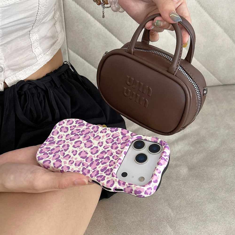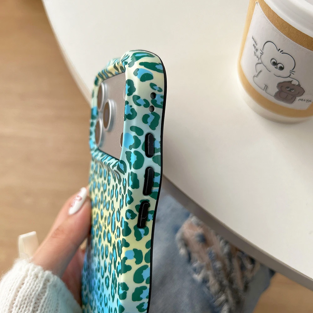 2 en 1 funda protectora de teléfono a prueba de golpes con estampado de leopardo degradado para IPhone 13 14 15 16 17 Pro Max Wave edge cubierta trasera