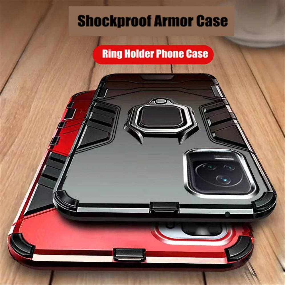 Poco F4 5G Funda protectora de lujo Armor Magentic Ring Car Holder Cover para Xiaomi Pocophone Little F4 GT F4GT PocoF4 GT Funda