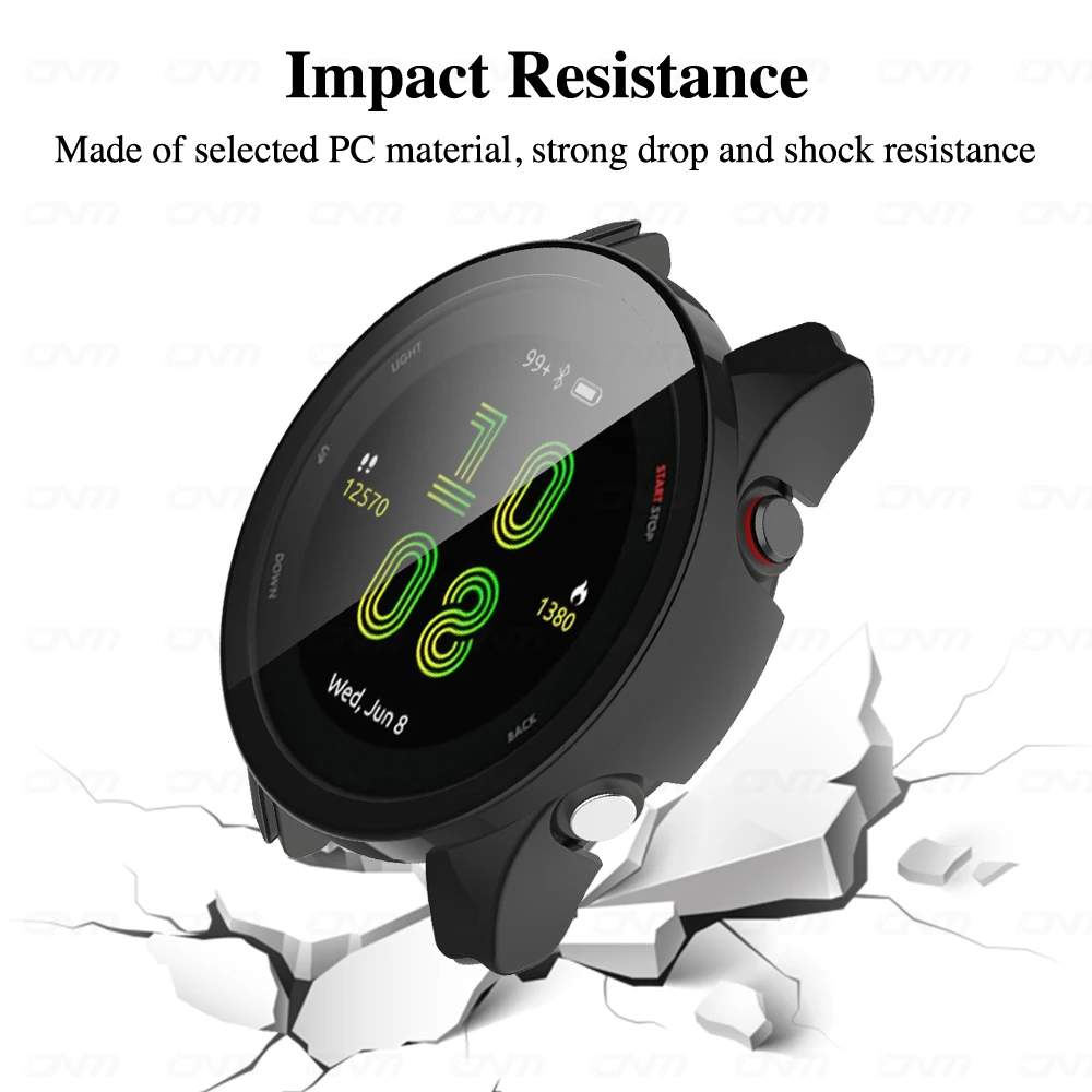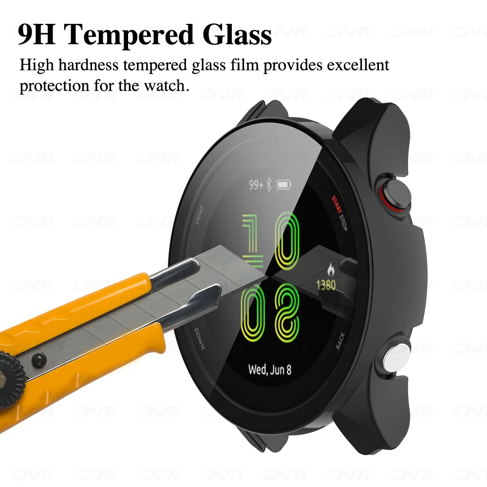 Case for garmin forerunner 255 Comparing with other PC case, Ultra-Thin tempered glass film is with 99.99% transparency, guarantee touch sensitivity and give your watch a unique invisible protection.