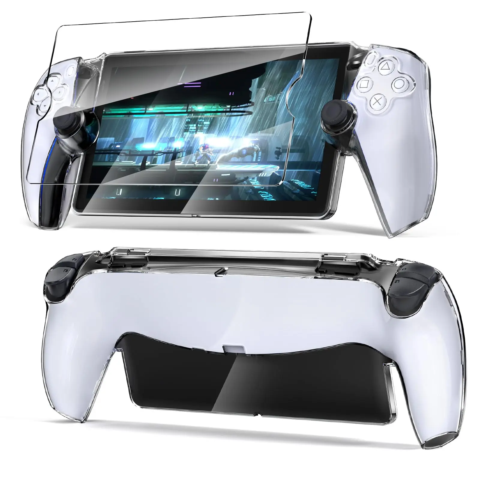 Comprar Funda protectora para Portal PlayStation con Protector de pantalla de vidrio templado, funda rígida transparente para PC, Kits de accesorios para Portal PS