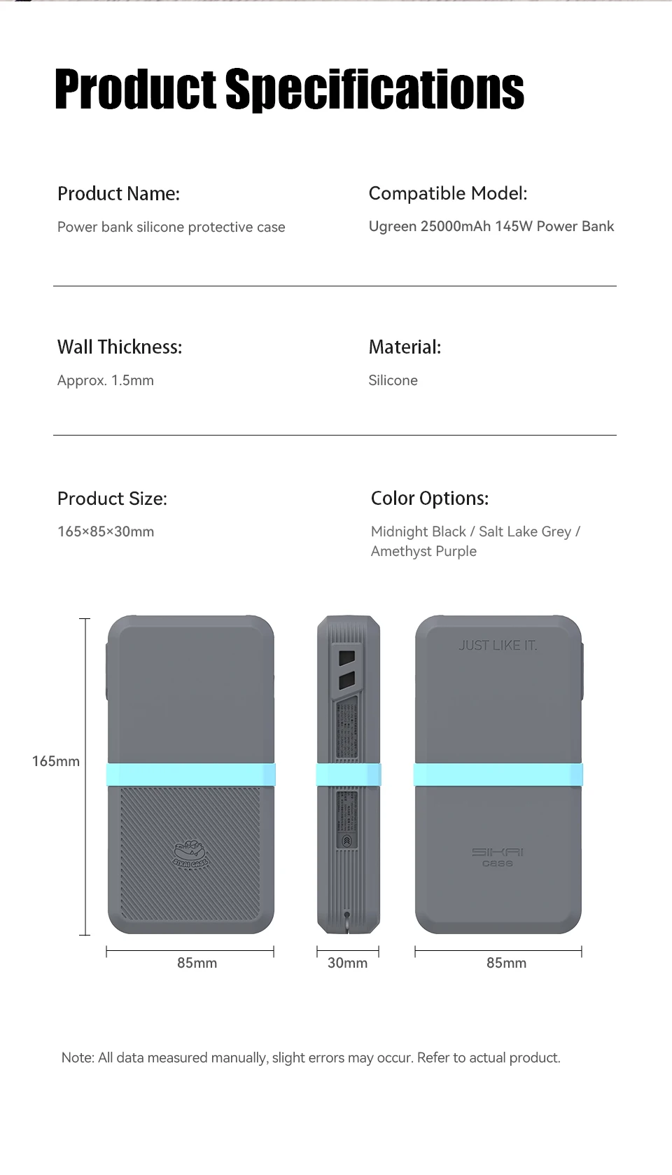 Funda protectora a prueba de polvo, funda de silicona de viaje para portátil Ugreen PowerBank, funda a prueba de golpes para UGREEN 145W 25000mAh Power Bank