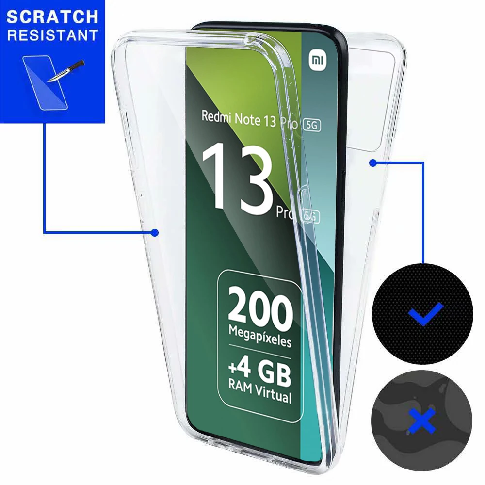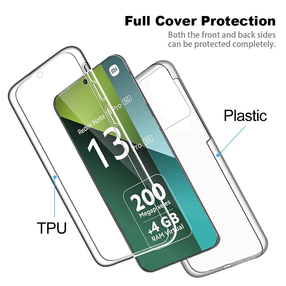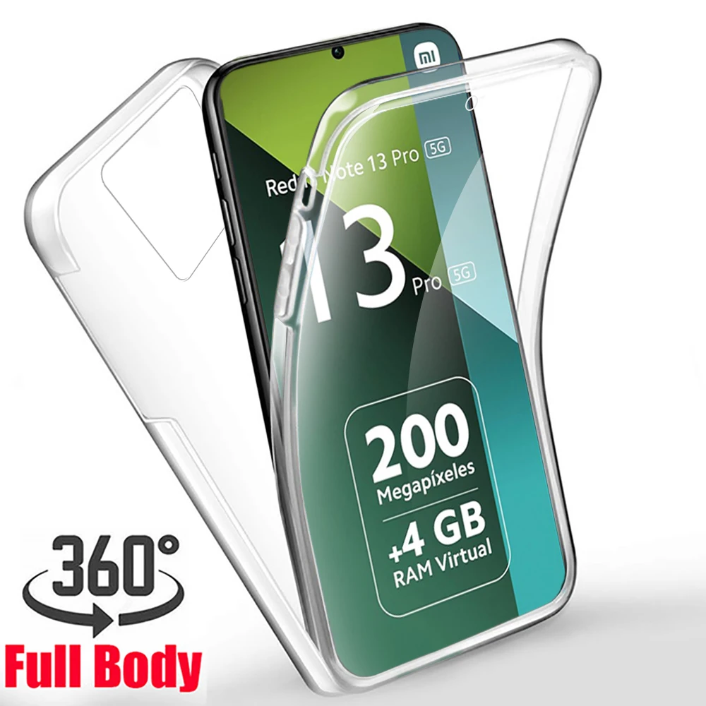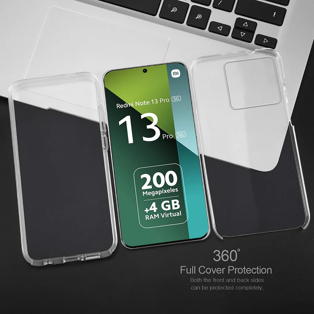 Comprar Funda protectora para Redmy Note 13 Pro 5G 4G, carcasa de cuerpo completo de 360 ° para Redmi Note 13 Pro + 5G, PC transparente + PET, doble cara, a prueba de golpes