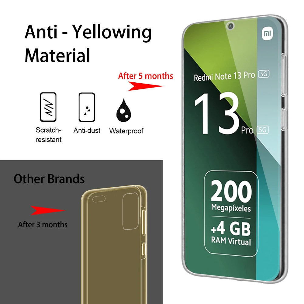 Funda Redmy Note13 Pro 5G 4G 360 ° Fundas protectoras de cuerpo completo para Redmi Note 13 Pro + 5G Clear PC + PET Coque a prueba de golpes de doble cara