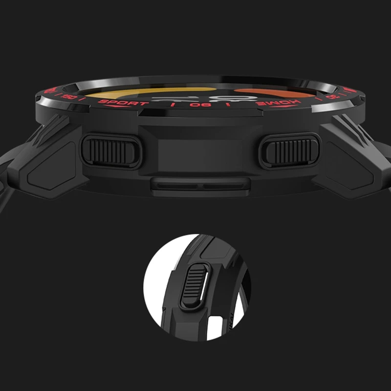 Fácil de instalar y usar: coloque el protector de la carcasa en su reloj inteligente, todos los orificios se alinean, incluidos los orificios para el micrófono y el altavoz. Permitiendo control completo de botones, pantalla táctil, carga. No es necesario quitar la correa del reloj ni la cubierta.
