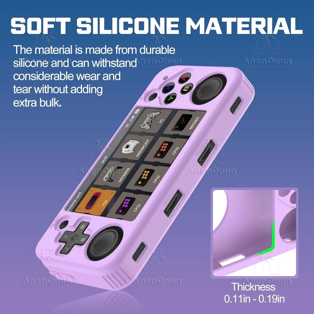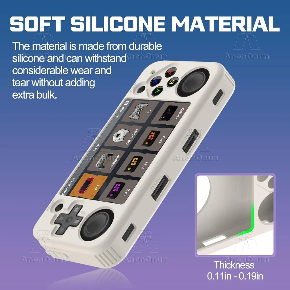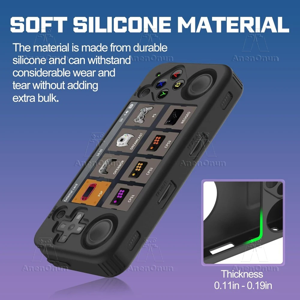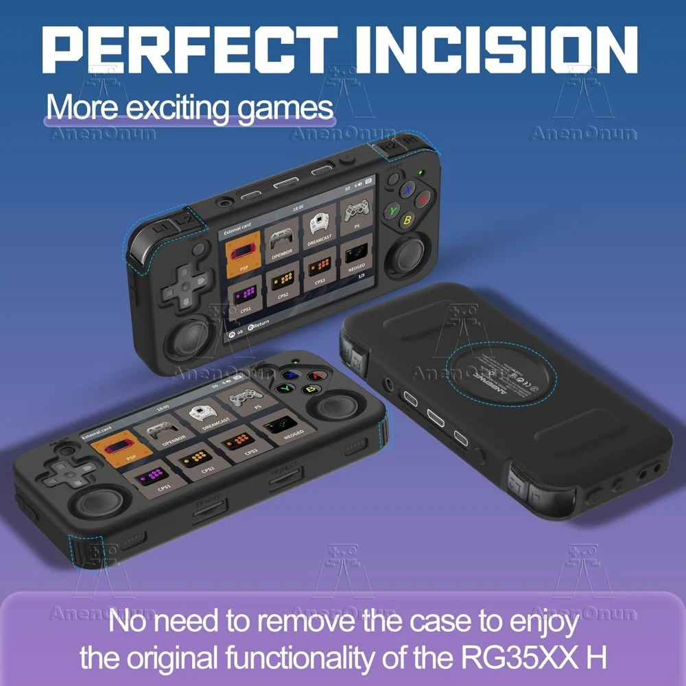 【Corte preciso】- Esta funda de silicona está diseñada para adaptarse a su dispositivo de forma precisa y segura, con aberturas cortadas con precisión para todos los puertos y botones para que pueda acceder fácilmente a todas las funciones del RG35XX H.