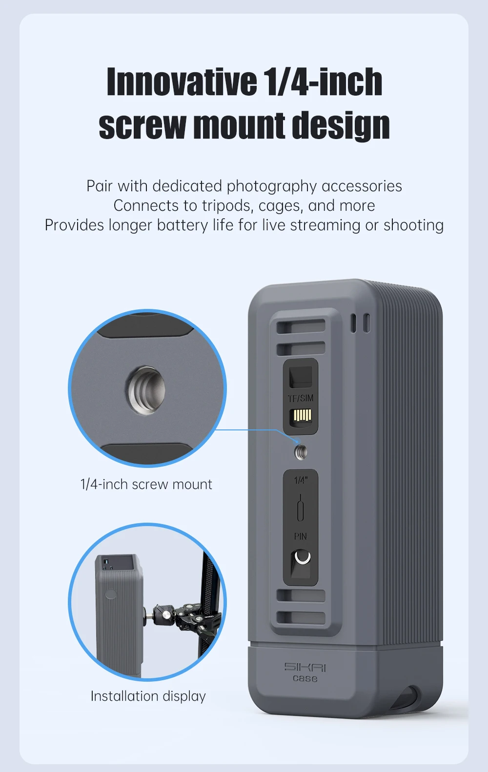 También se puede utilizar para cargar la cámara y montar en un trípode para cámara.