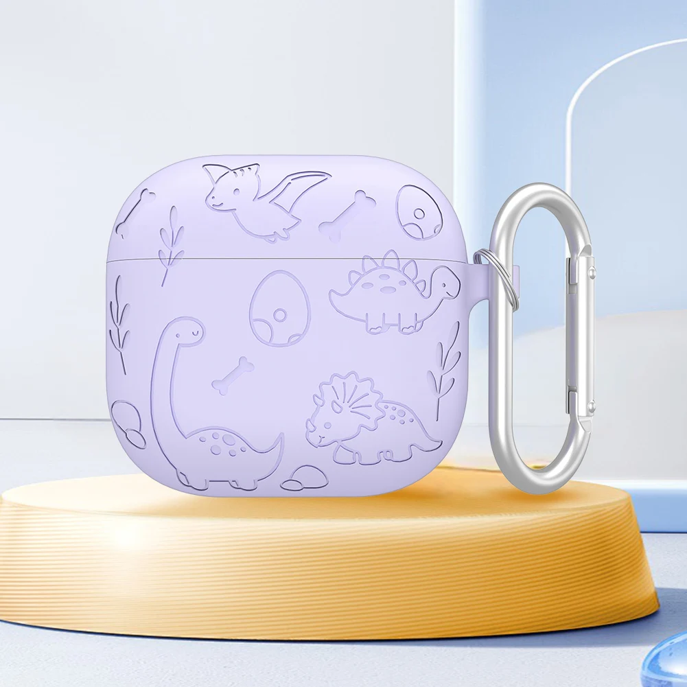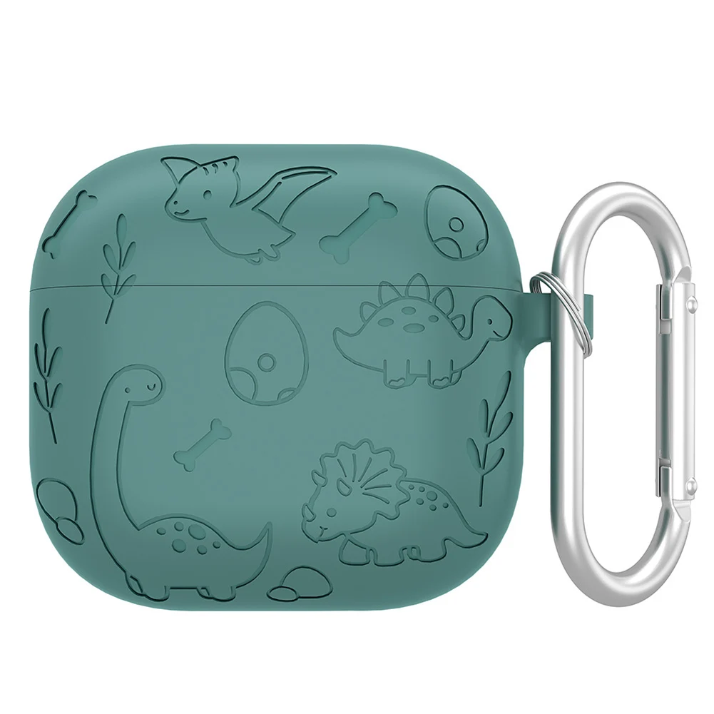 Funda de dinosaurio de flores grabadas de silicona con mosquetón Funda protectora de piel de silicona suave Protección contra caídas Funda bonita a prueba de golpes Resistente a los arañazosCompatible conFunda Apple Airpods de 4a generación (2024)