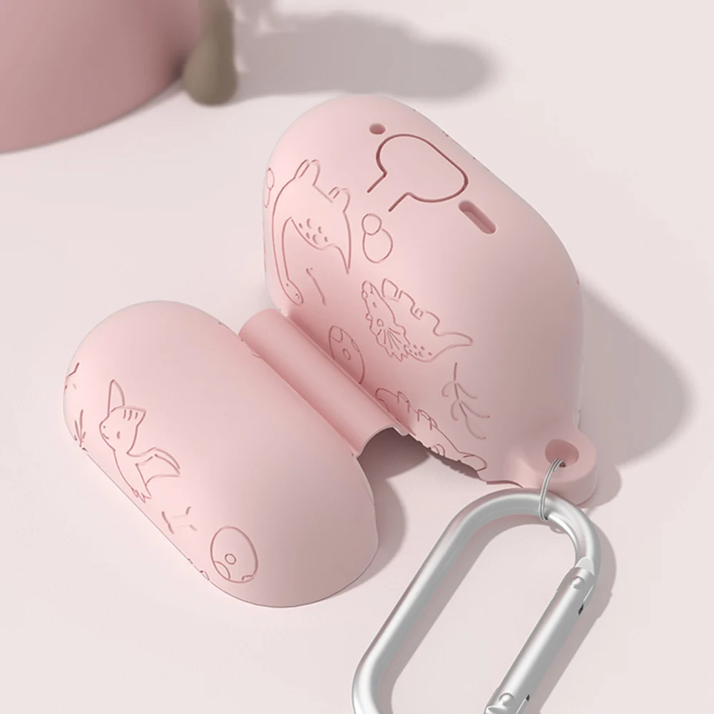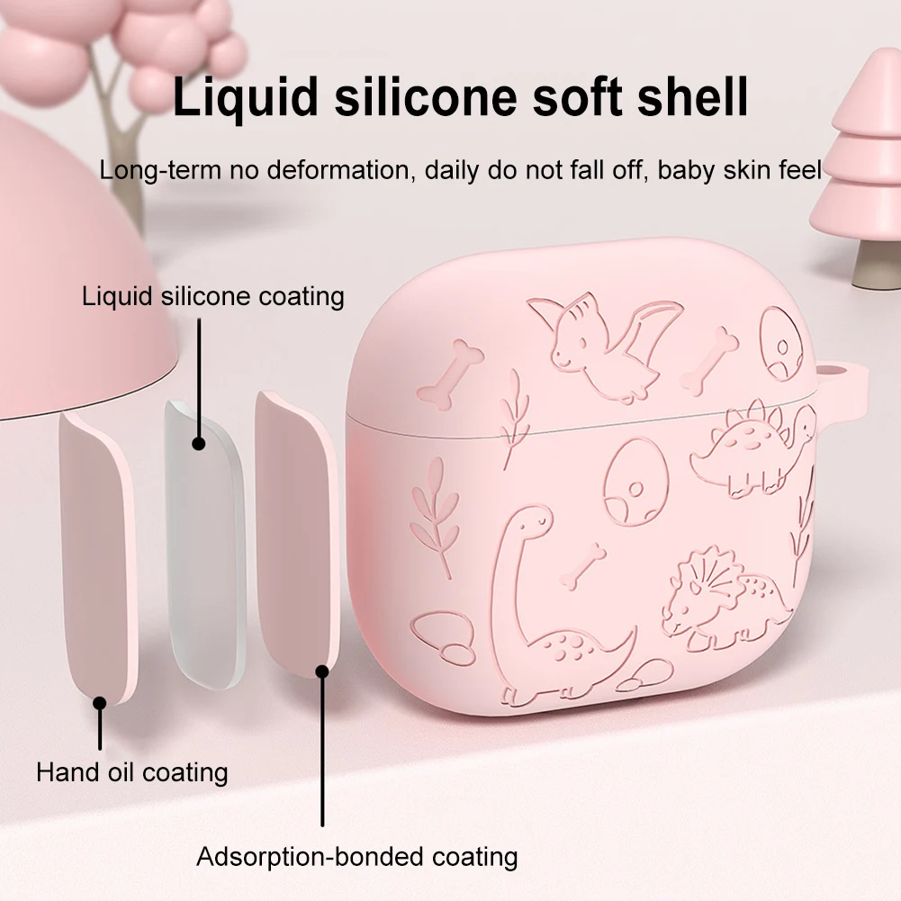 1.Diseño:La funda protectora está moldeada con precisión.Compatible conAirPods 4 (2024), ofreciendo un ajuste cómodo pero no apretado 360° protección.Con elegantes patrones de flores grabadas y lindos patrones de dinosaurios, hace que sus auriculares destaquen de manera única en cualquier entorno.