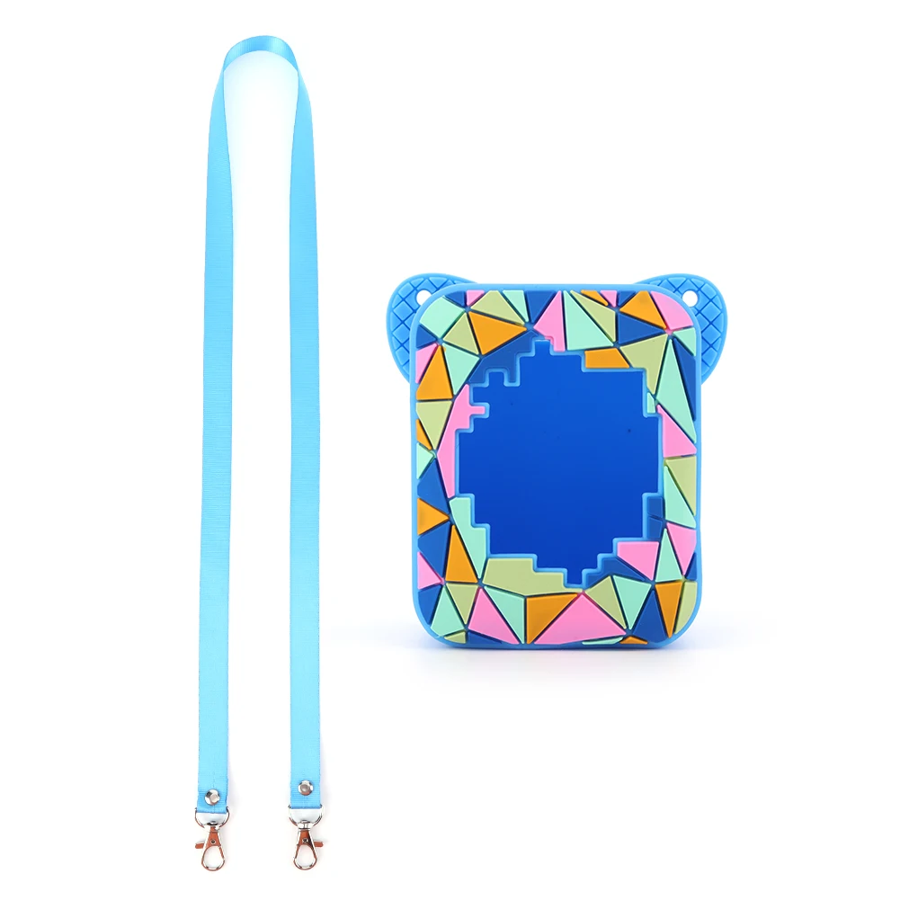 4. Ultraportátil y práctico:La funda protectora de la piel es fácil de instalar y quitar, equipada con un cordón desmontable con un gancho. Totalmente extendido a unos 85cm, la longitud es suficiente para que los niños lo lleven a mano o lo lleven alrededor del cuello, haciendo que sea fácil llevar el dispositivo de mascota virtual y guardarlo en una mochila, acompañándolo en cualquier momento y en cualquier lugar.