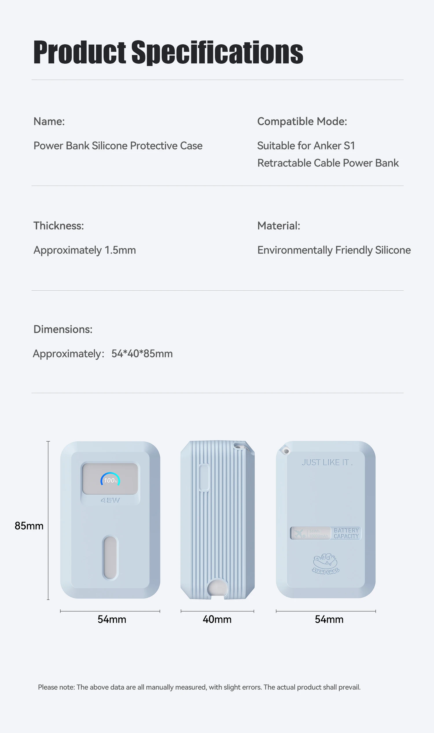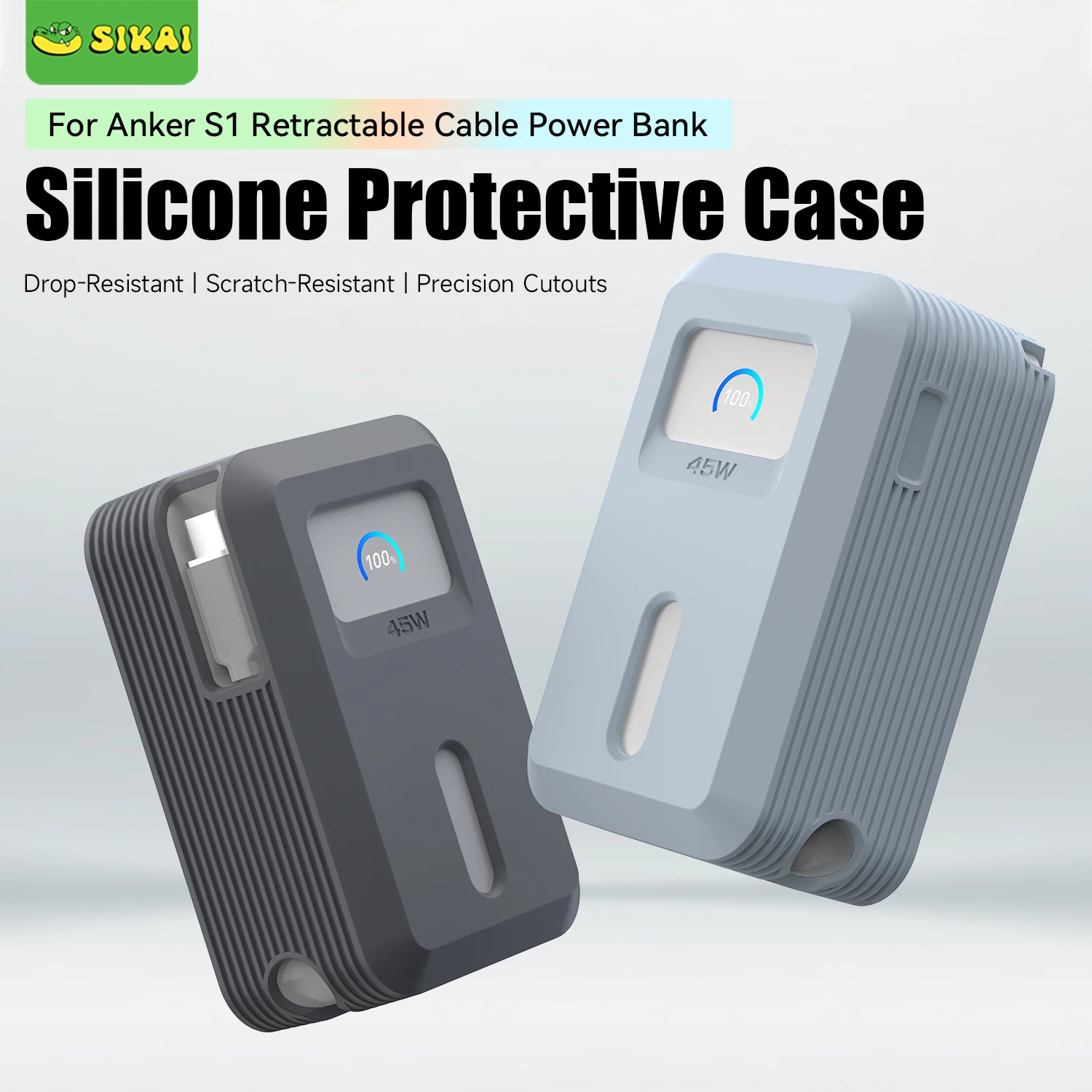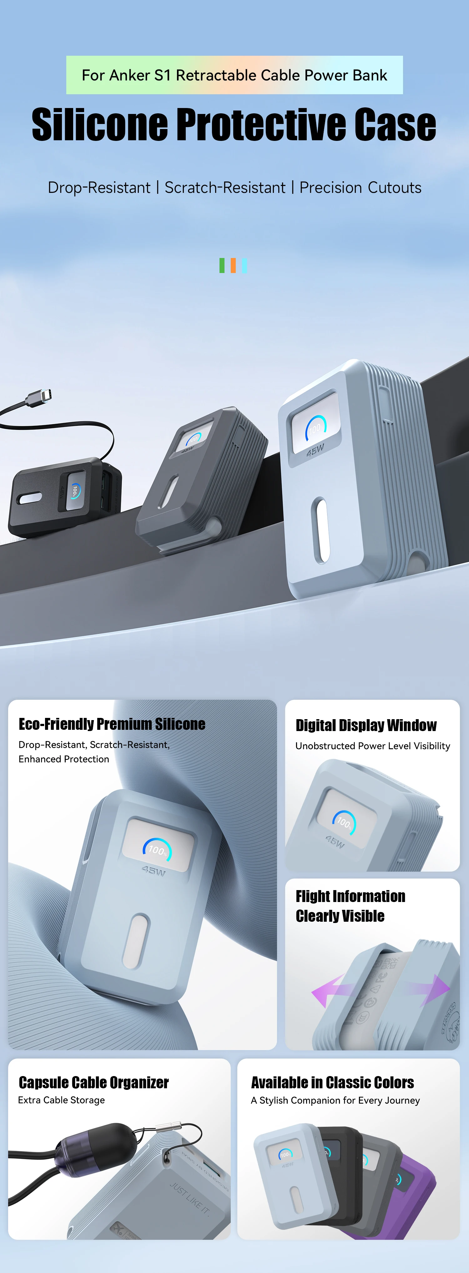 Comprar Funda protectora de silicona para Anker S1 Cable retráctil PowerBank (10.000mAh 45W) A1638 cubierta protectora antideslizante y a prueba de golpes