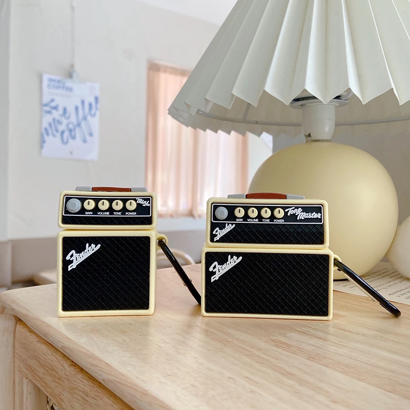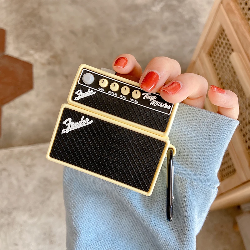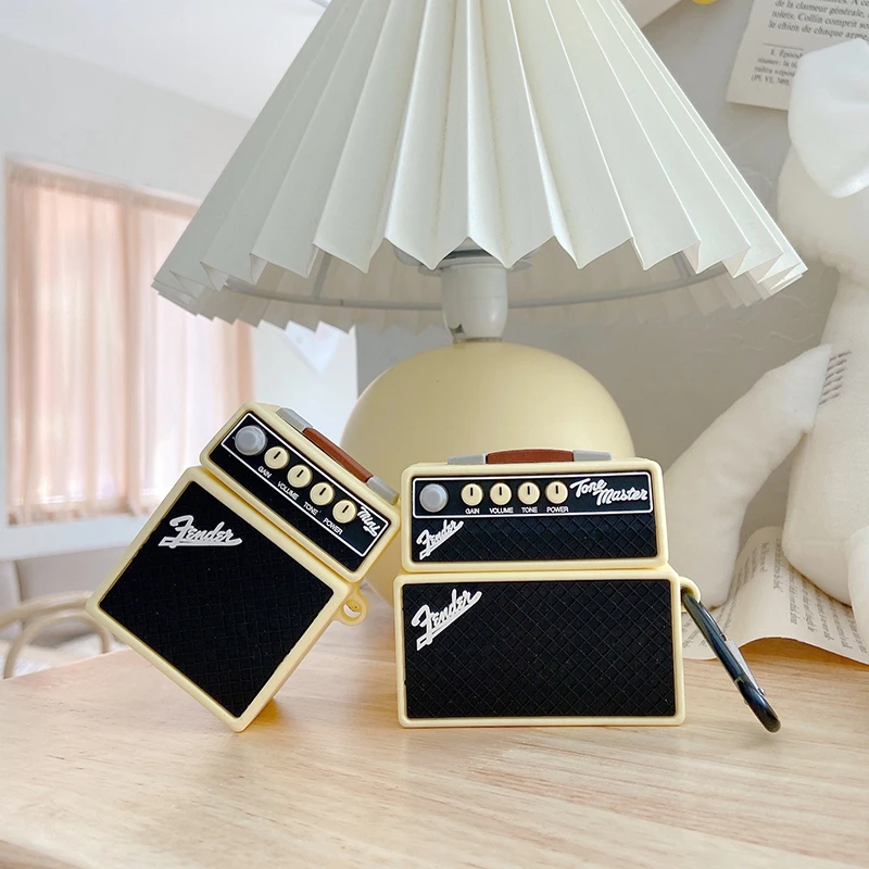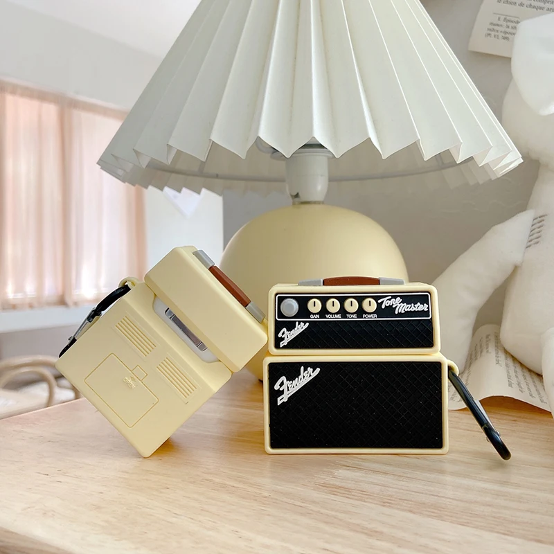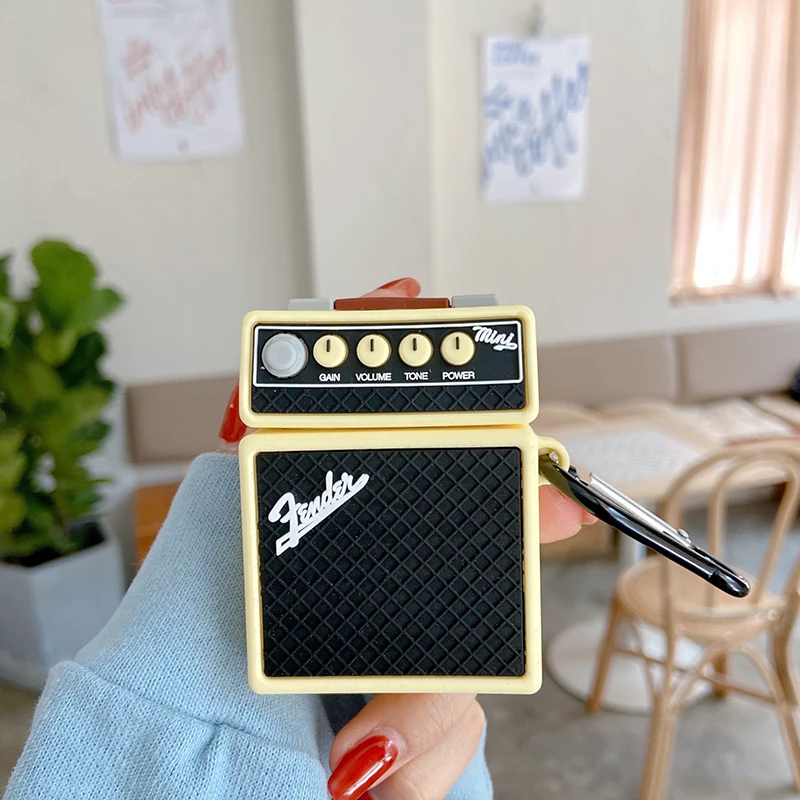 Comprar Funda protectora de silicona para auriculares inalámbricos, funda de altavoz Musical de sonido de marca Retro cuadrada 3D para AirPods 2 1 3 Pro Box