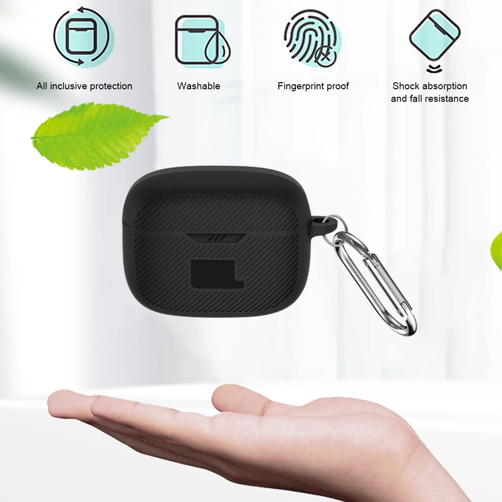 Funda protectora de silicona para auriculares inalámbricos, funda antipolvo para auriculares con gancho para JBL Tune 130NC TWS