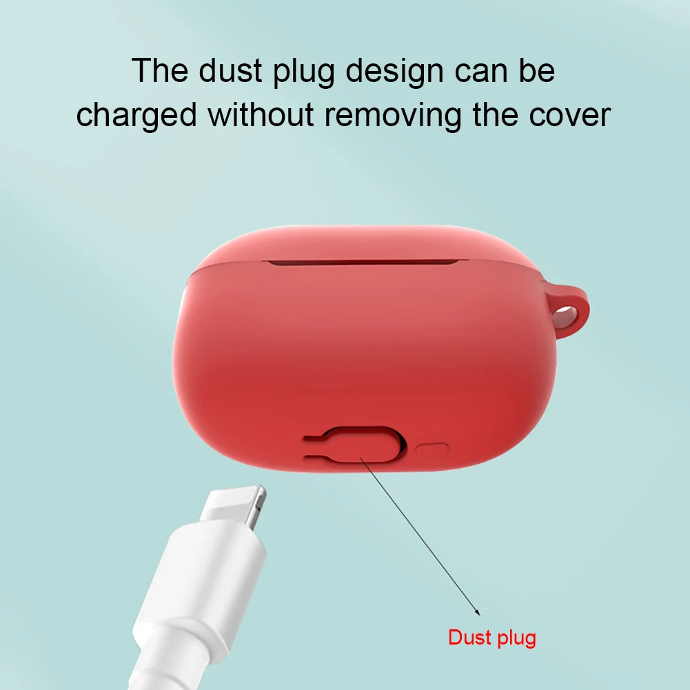 3. Diseño del orificio de carga:Con un diseño de orificio de carga, la instalación de la cubierta de silicona no afectará la carga de los auriculares, y se puede cargar sin quitar la cubierta protectora.